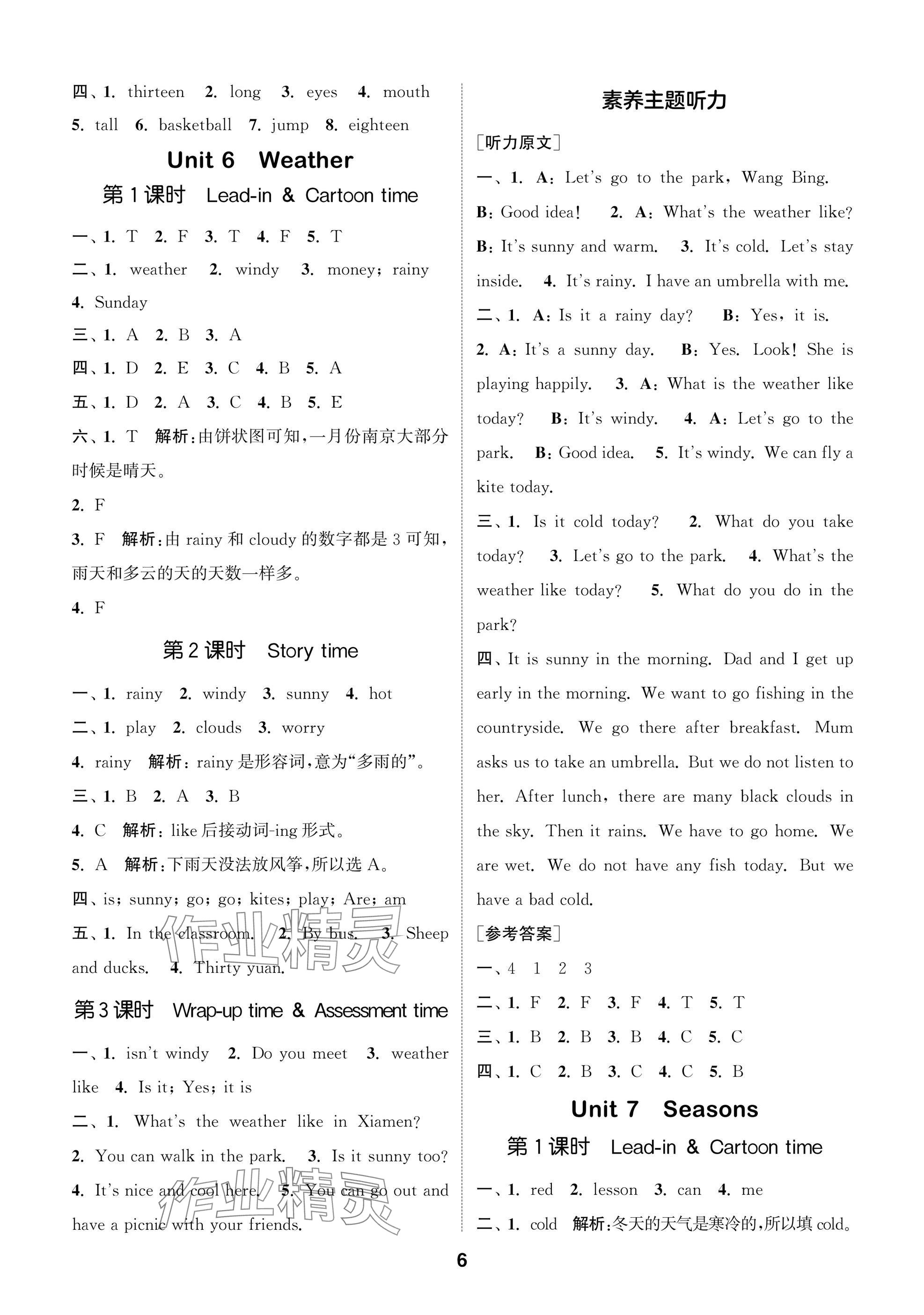 2025年课时作业本闯关练四年级英语上册译林版参考答案第6页