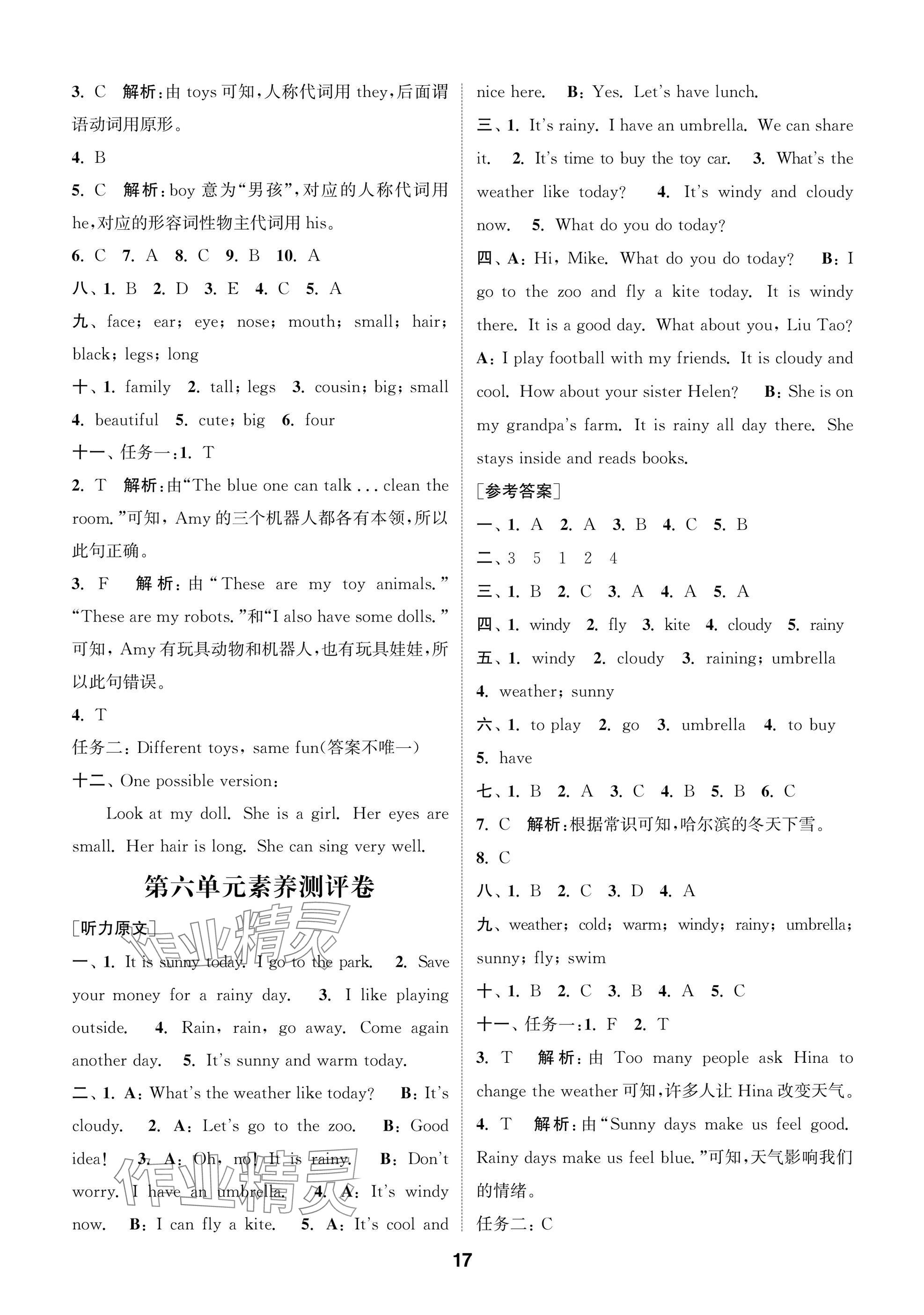 2025年课时作业本闯关练四年级英语上册译林版参考答案第17页