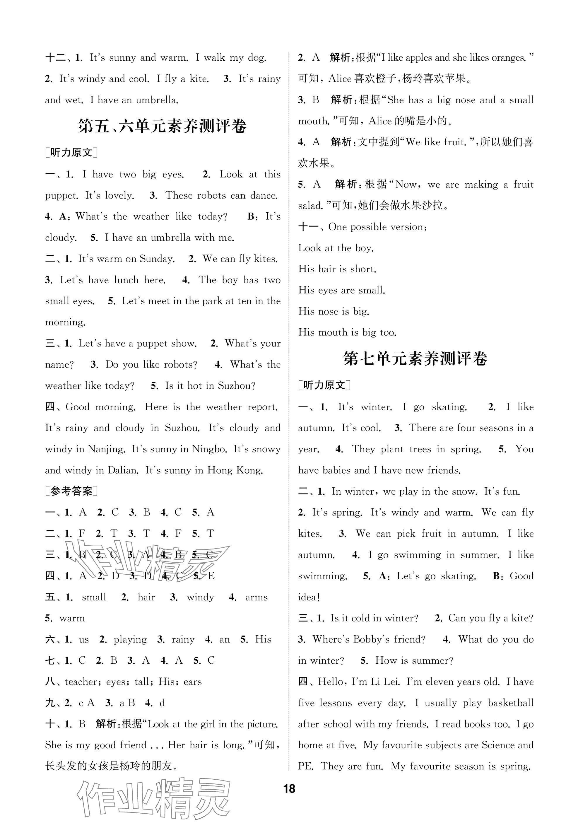 2025年课时作业本闯关练四年级英语上册译林版参考答案第18页