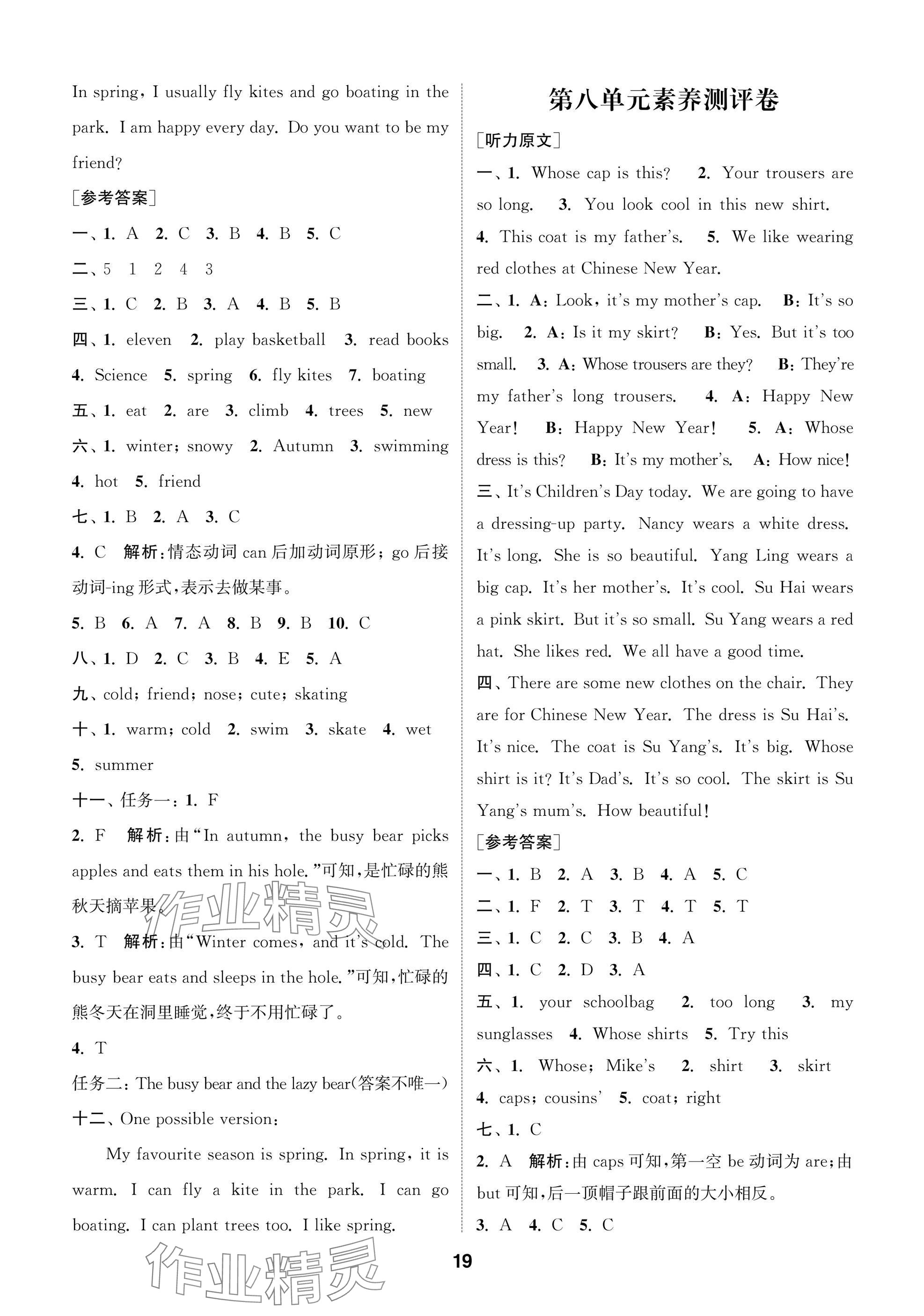 2025年课时作业本闯关练四年级英语上册译林版参考答案第19页