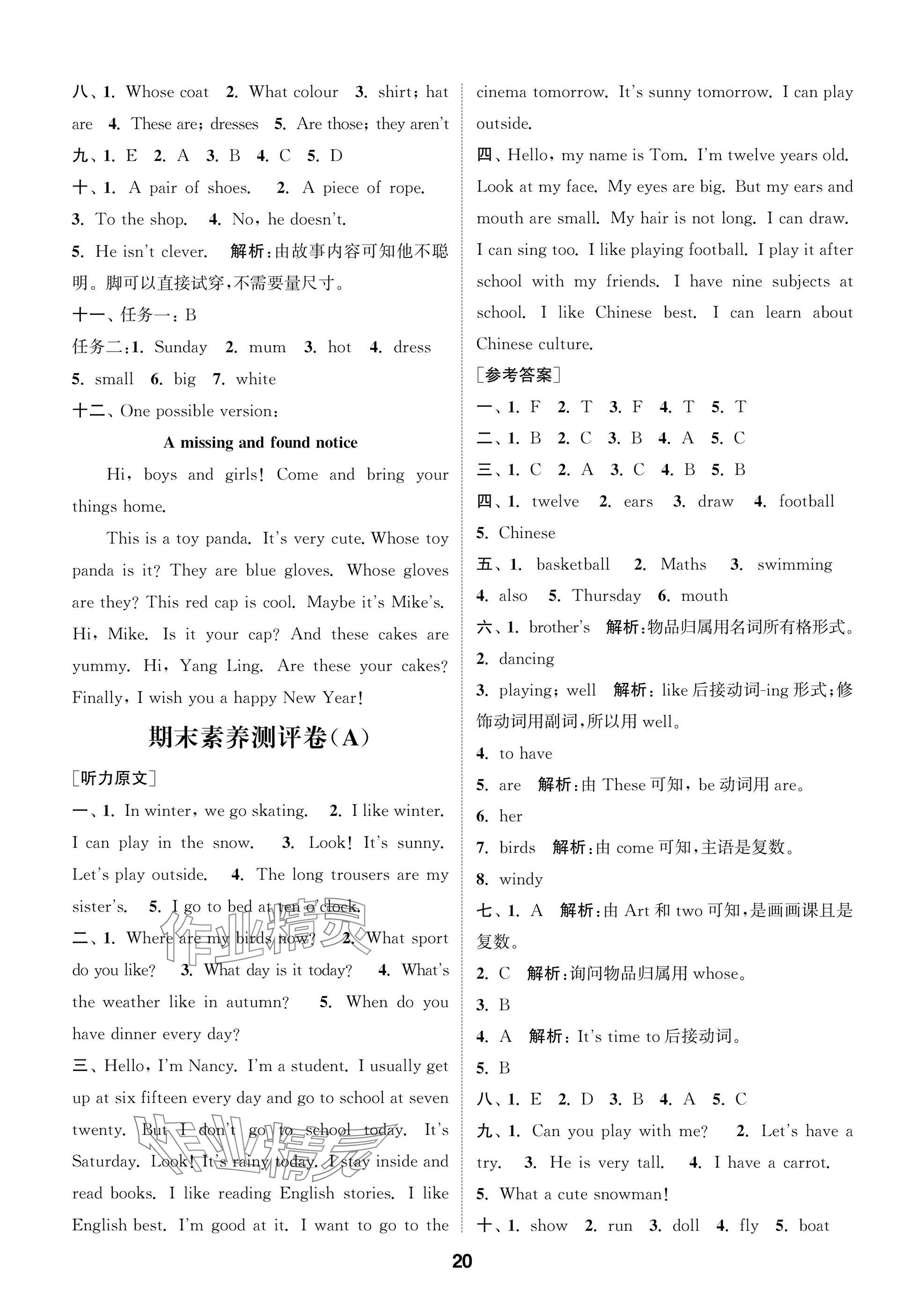2025年课时作业本闯关练四年级英语上册译林版参考答案第20页