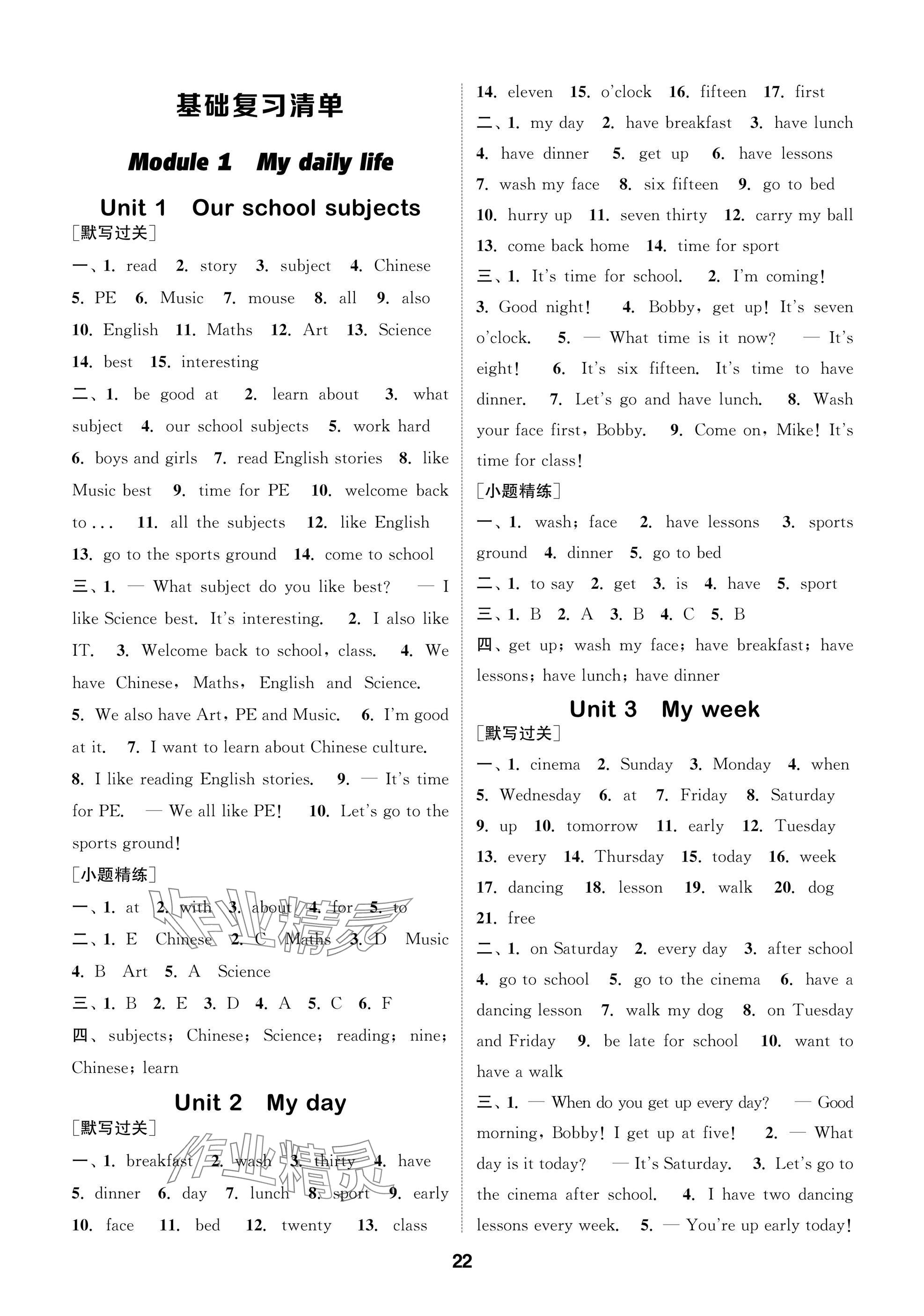 2025年课时作业本闯关练四年级英语上册译林版参考答案第22页