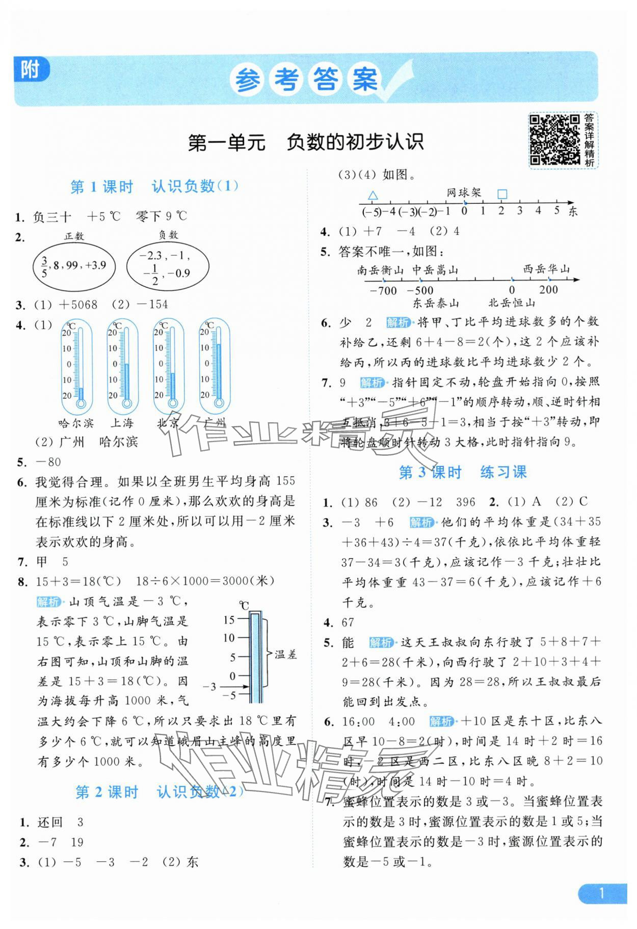 2025年亮点给力提优课时作业本五年级数学上册江苏版参考答案第1页