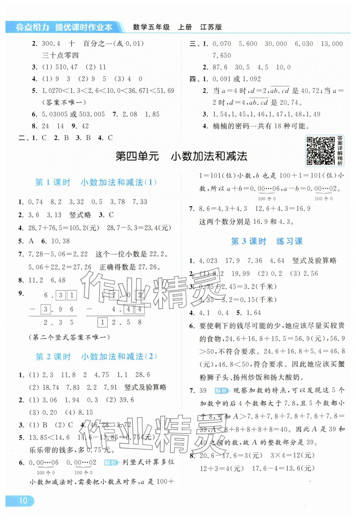 2025年亮点给力提优课时作业本五年级数学上册江苏版参考答案第10页