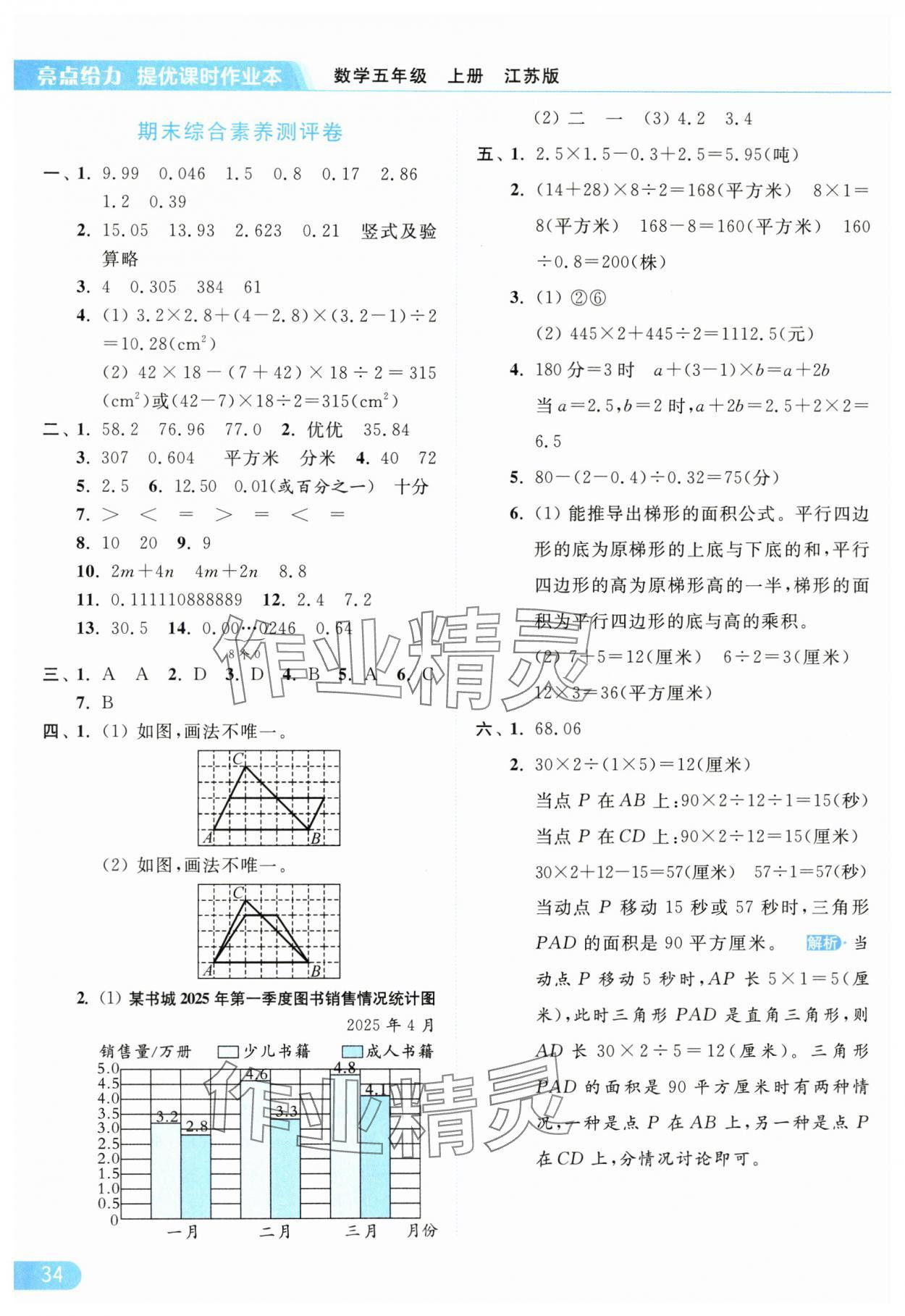 2025年亮点给力提优课时作业本五年级数学上册江苏版参考答案第34页
