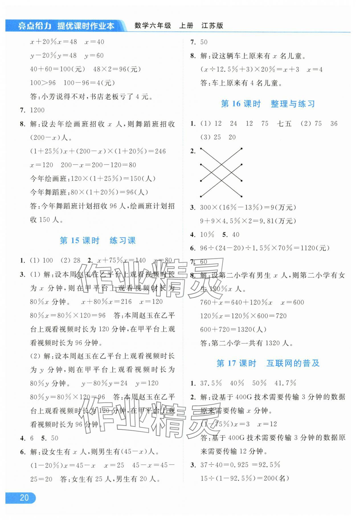 2025年亮点给力提优课时作业本六年级数学上册江苏版参考答案第20页