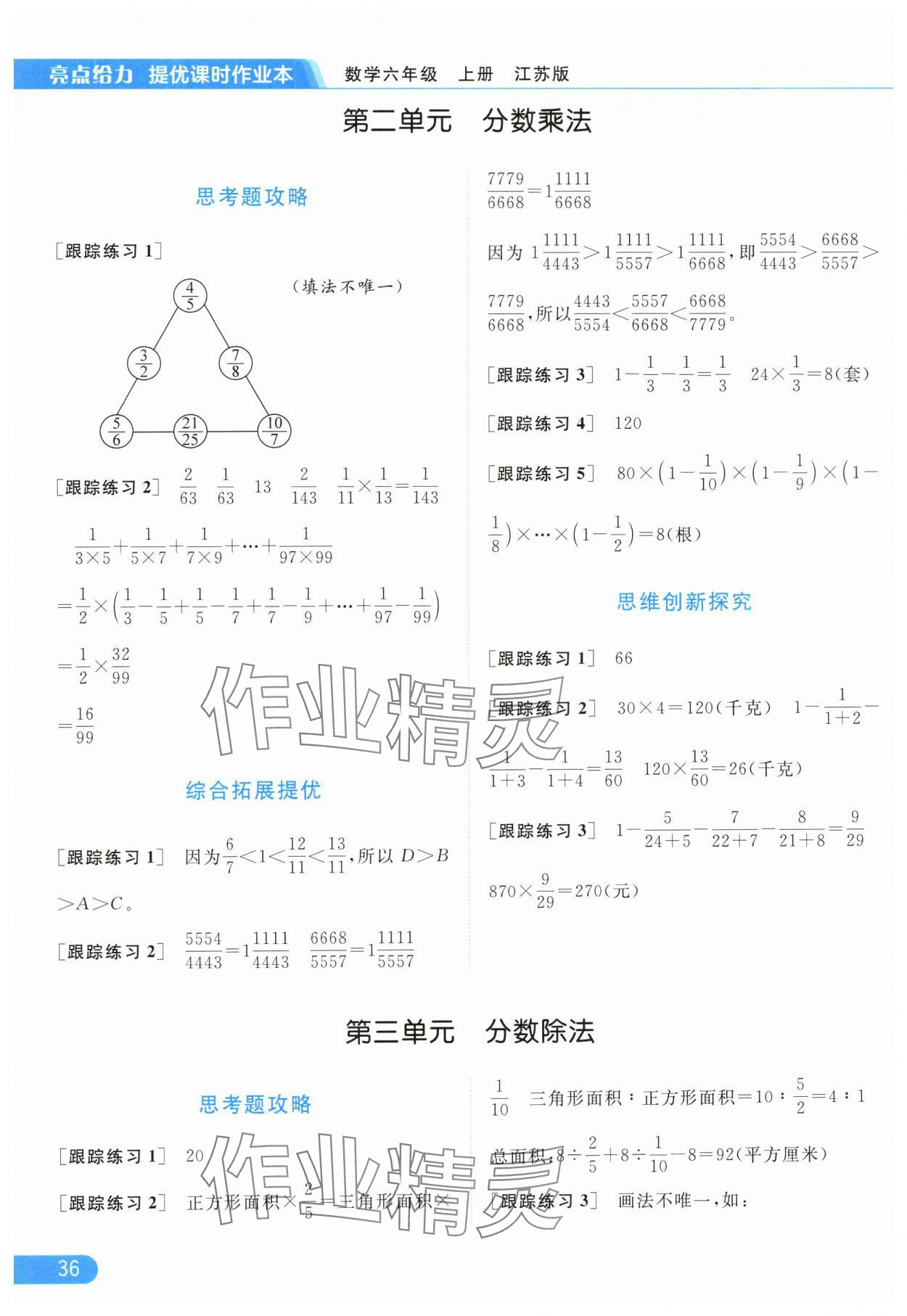 2025年亮点给力提优课时作业本六年级数学上册江苏版参考答案第36页