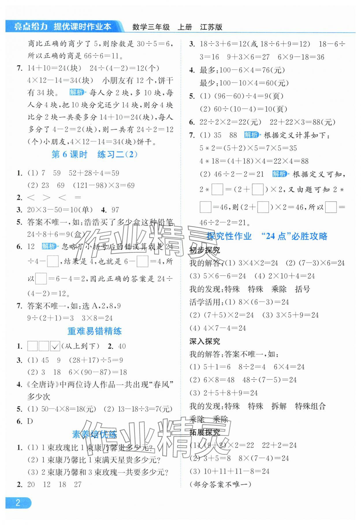 2025年亮点给力提优课时作业本三年级数学上册江苏版参考答案第2页