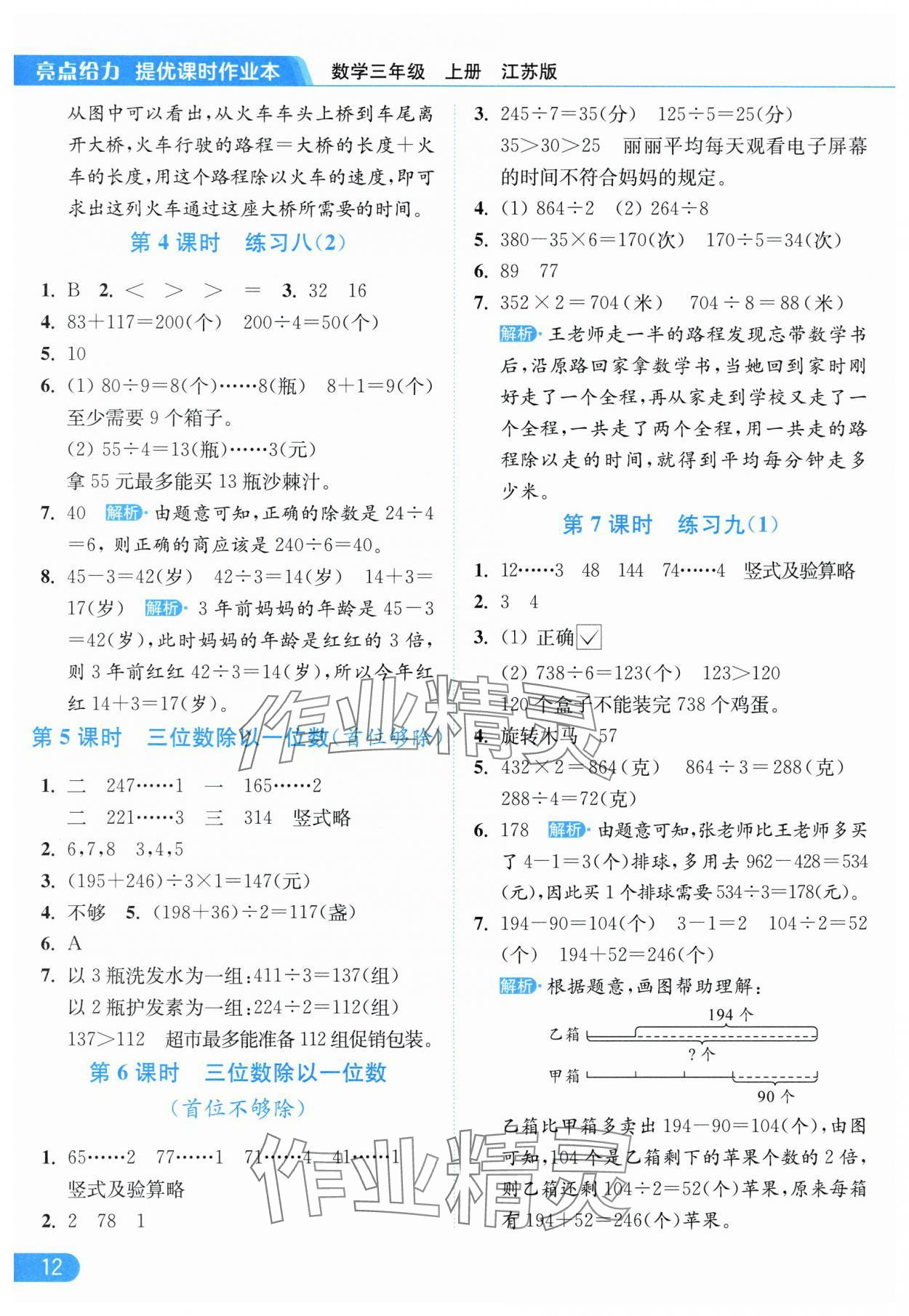 2025年亮点给力提优课时作业本三年级数学上册江苏版参考答案第12页