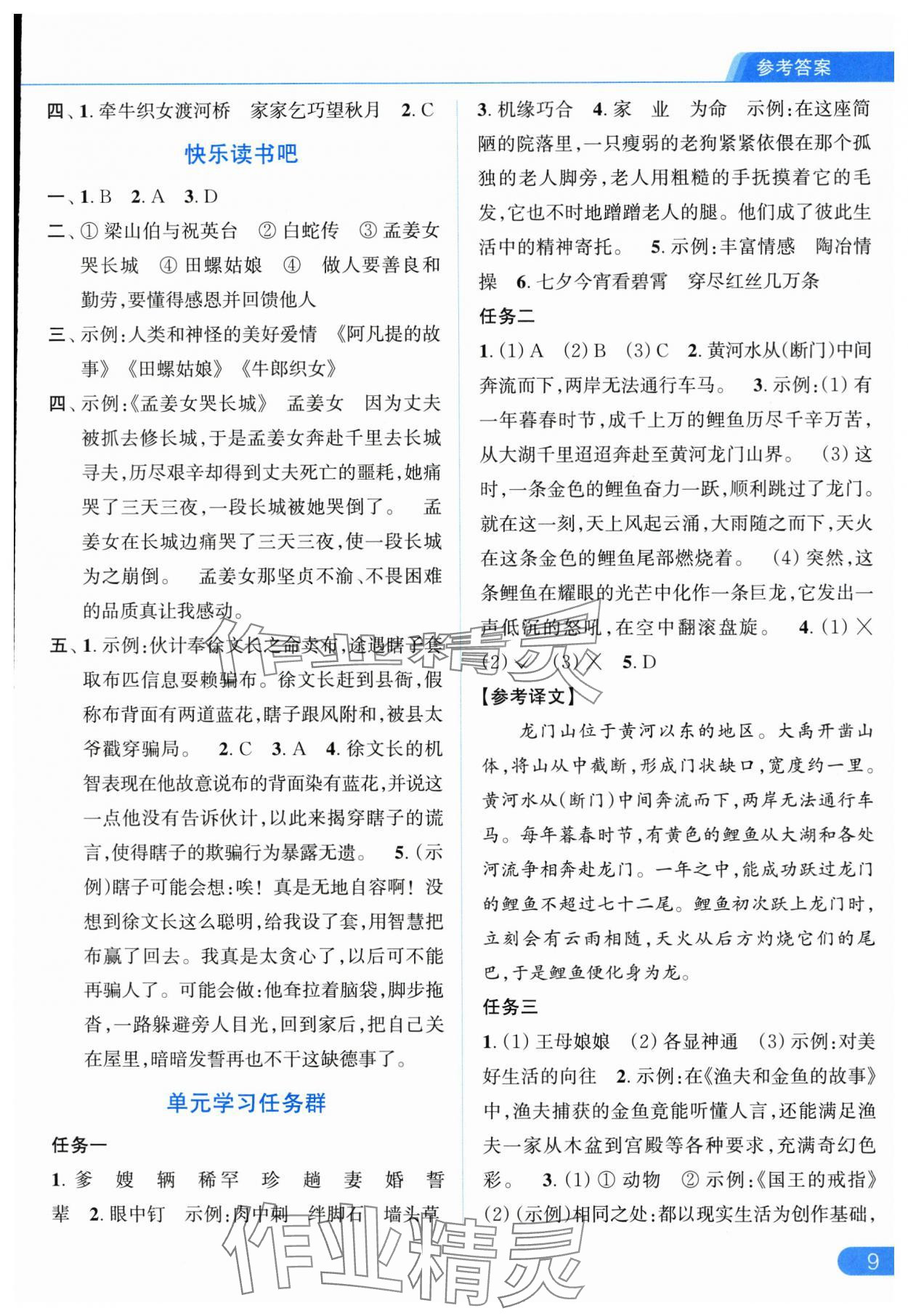 2025年亮点给力提优课时作业本五年级语文上册统编版参考答案第9页