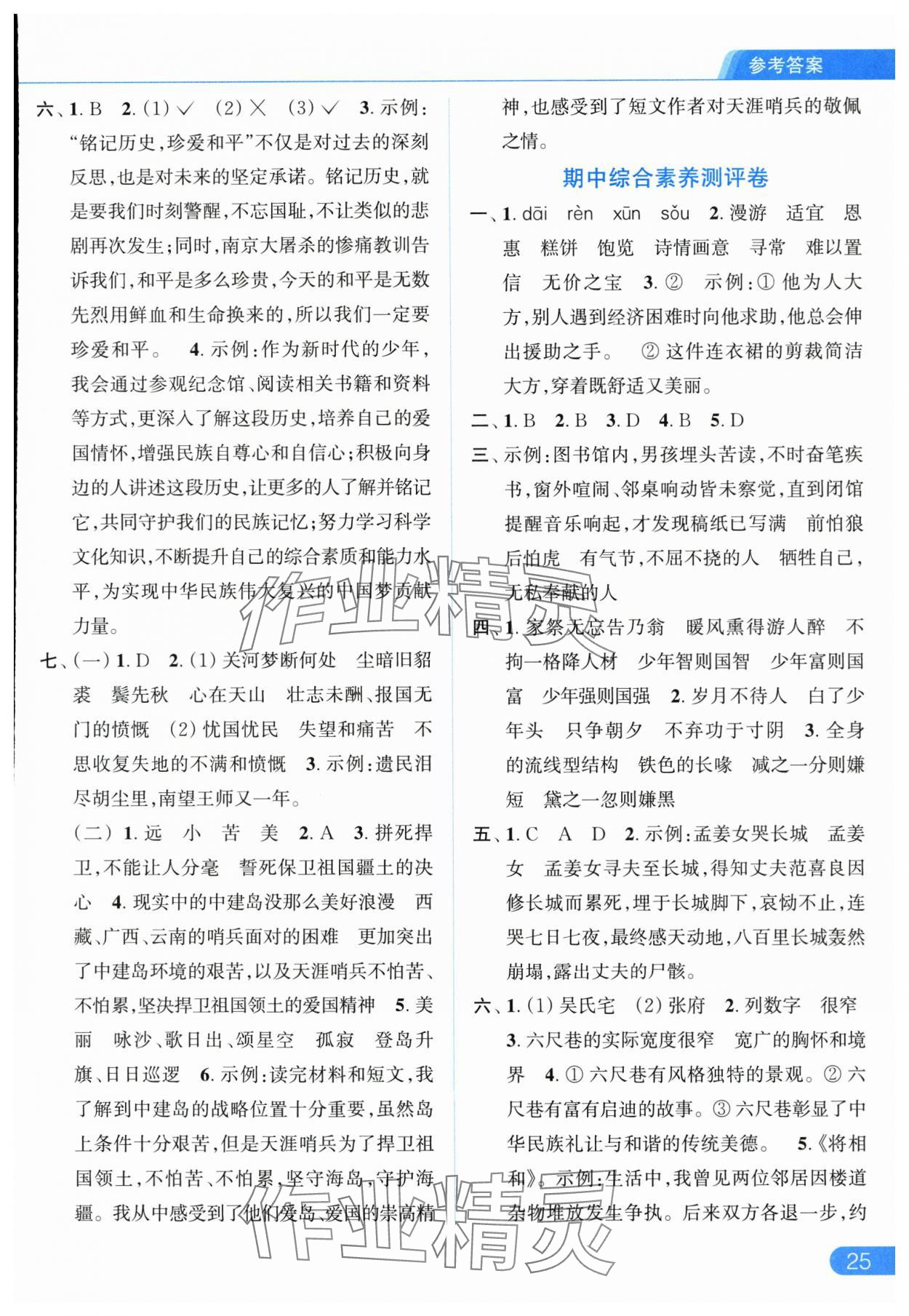 2025年亮点给力提优课时作业本五年级语文上册统编版参考答案第25页