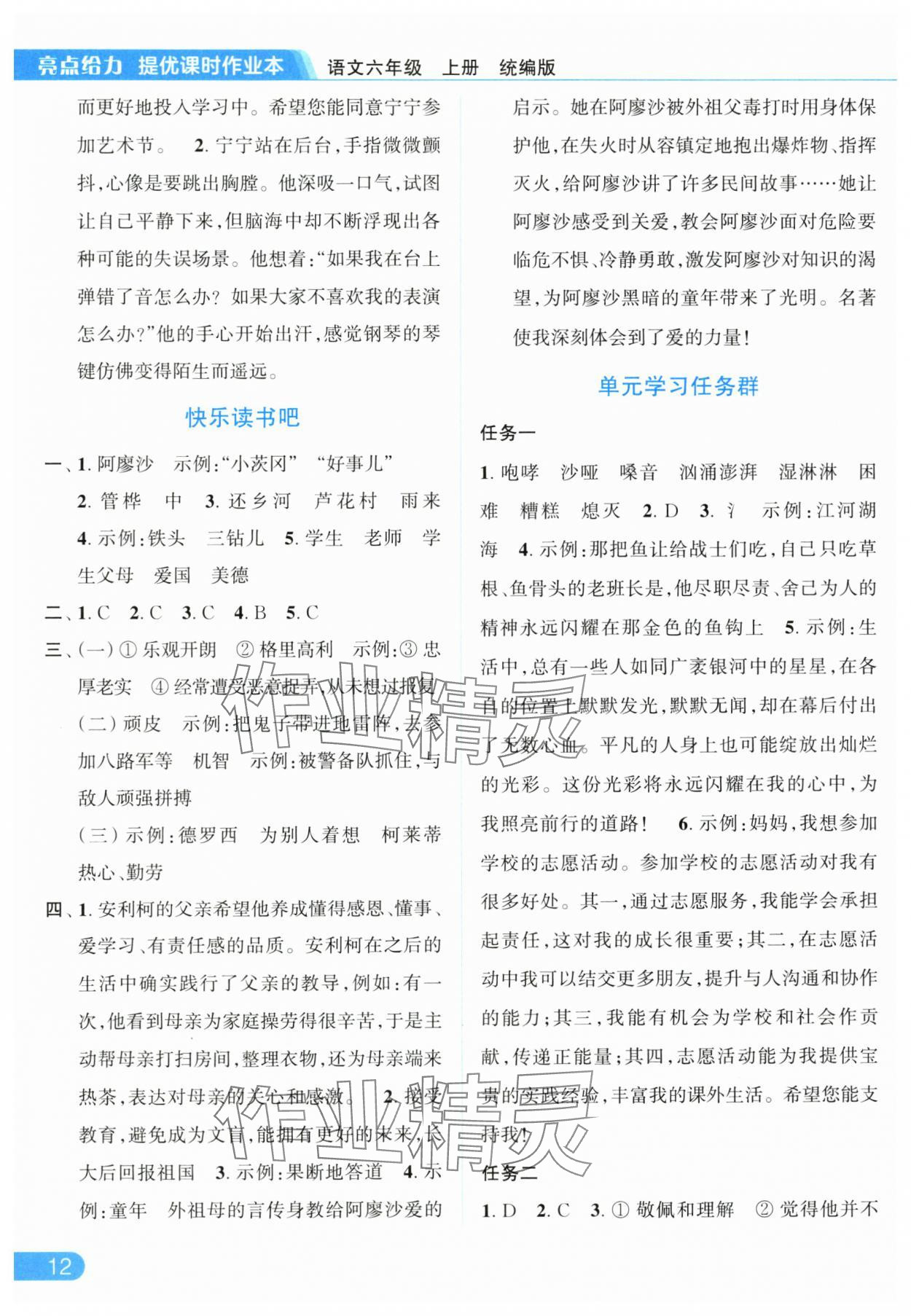2025年亮点给力提优课时作业本六年级语文上册人教版参考答案第12页