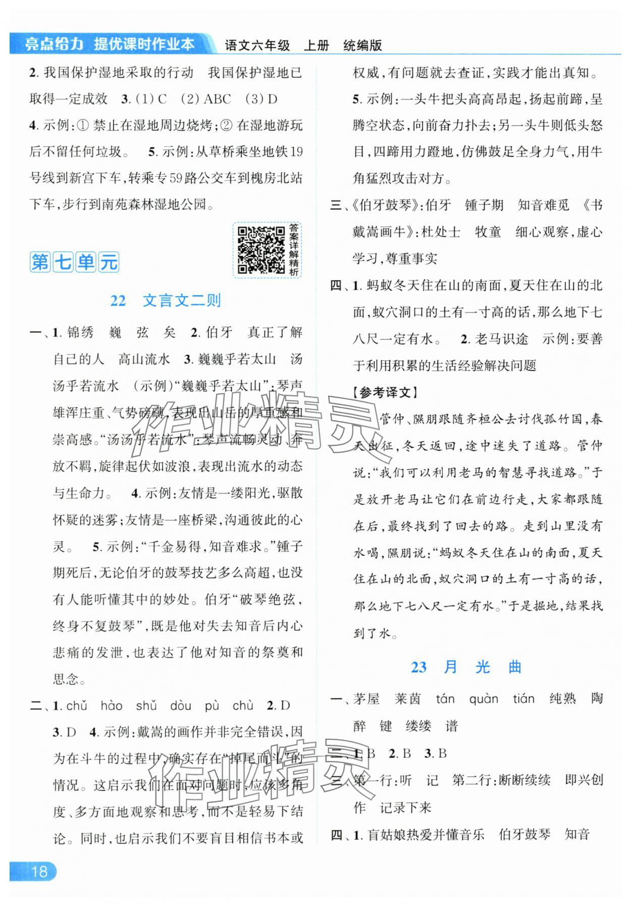 2025年亮点给力提优课时作业本六年级语文上册人教版参考答案第18页