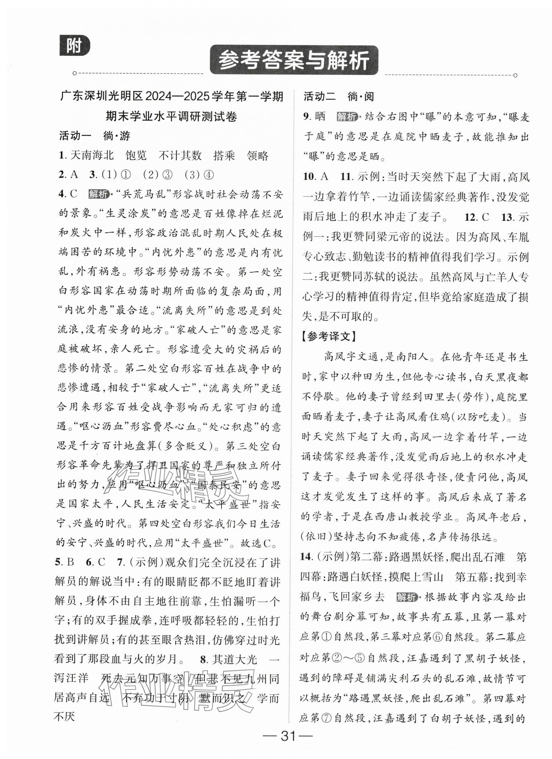 2025年亮点给力提优课时作业本五年级语文上册统编版第31页