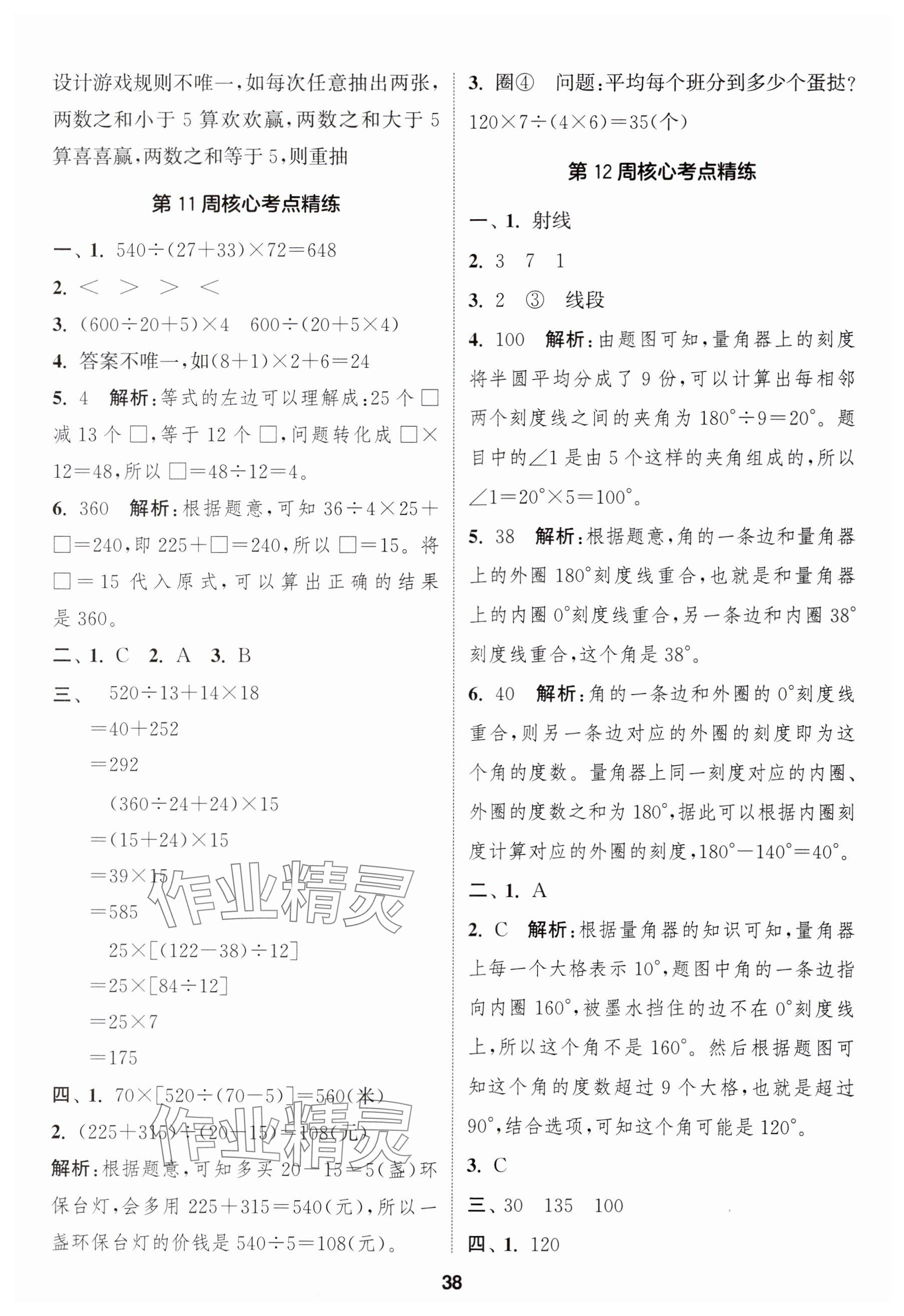 2025年课时作业本闯关练四年级数学上册苏教版参考答案第41页