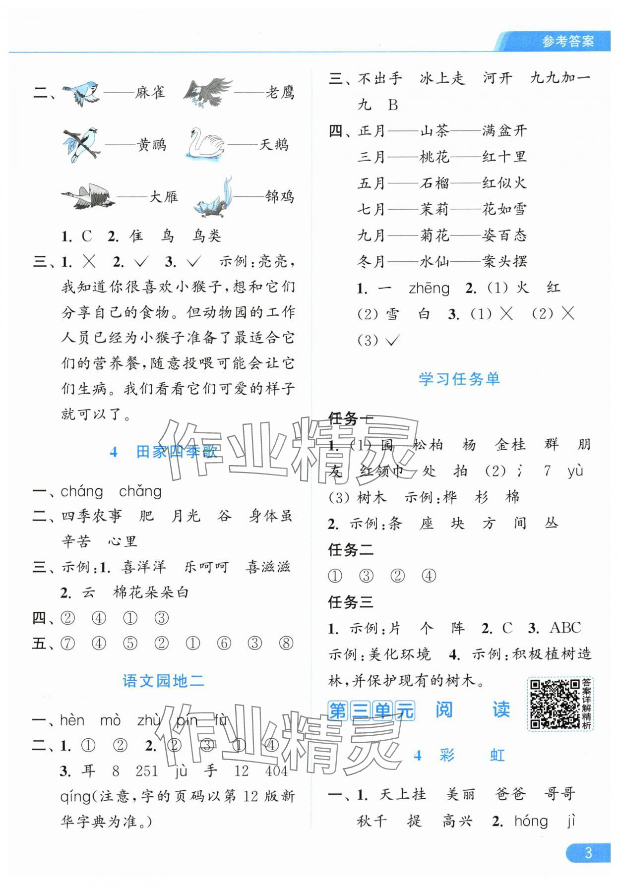 2025年亮点给力提优课时作业本二年级语文上册统编版参考答案第3页