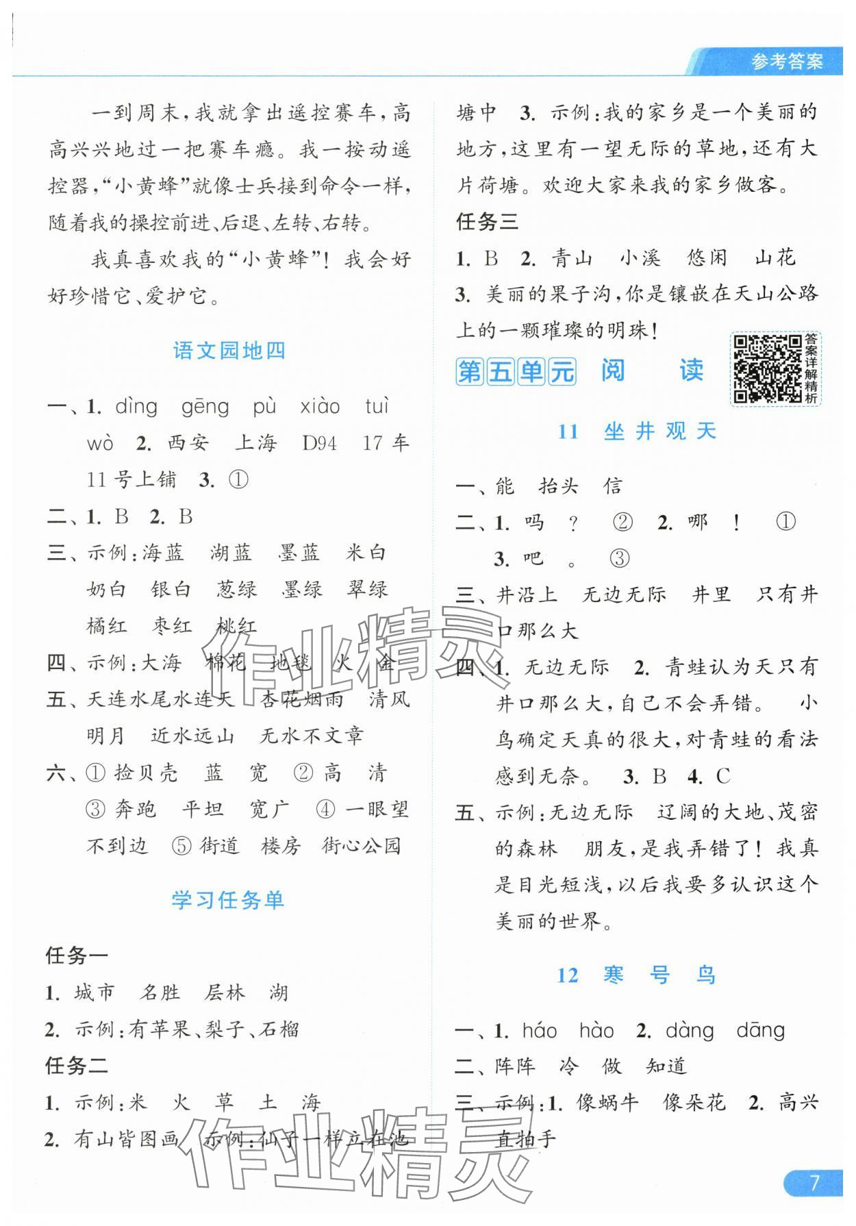 2025年亮点给力提优课时作业本二年级语文上册统编版参考答案第7页