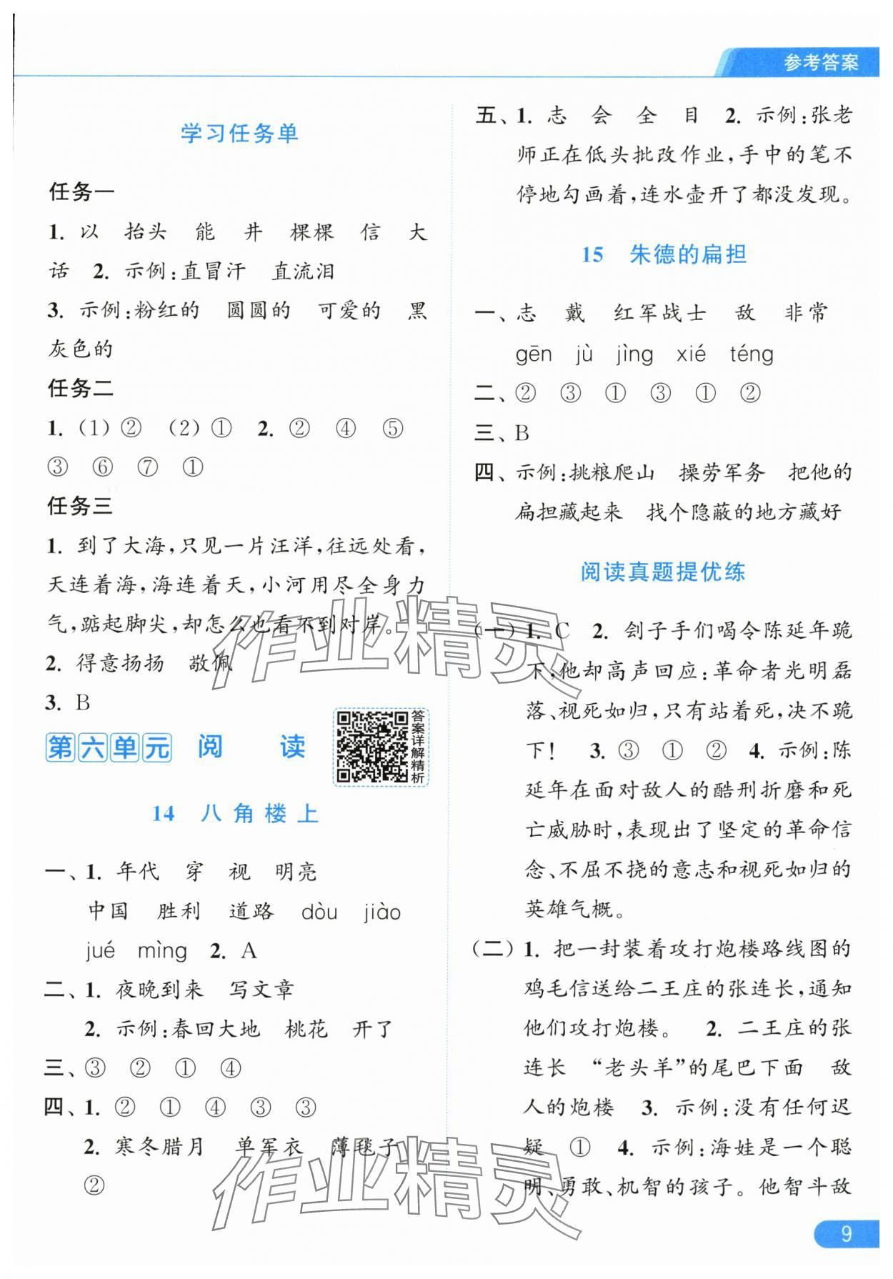 2025年亮点给力提优课时作业本二年级语文上册统编版参考答案第9页