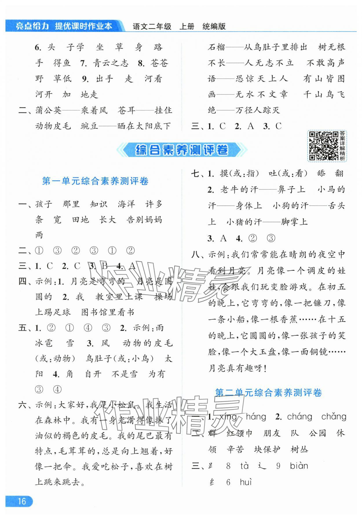 2025年亮点给力提优课时作业本二年级语文上册统编版参考答案第16页