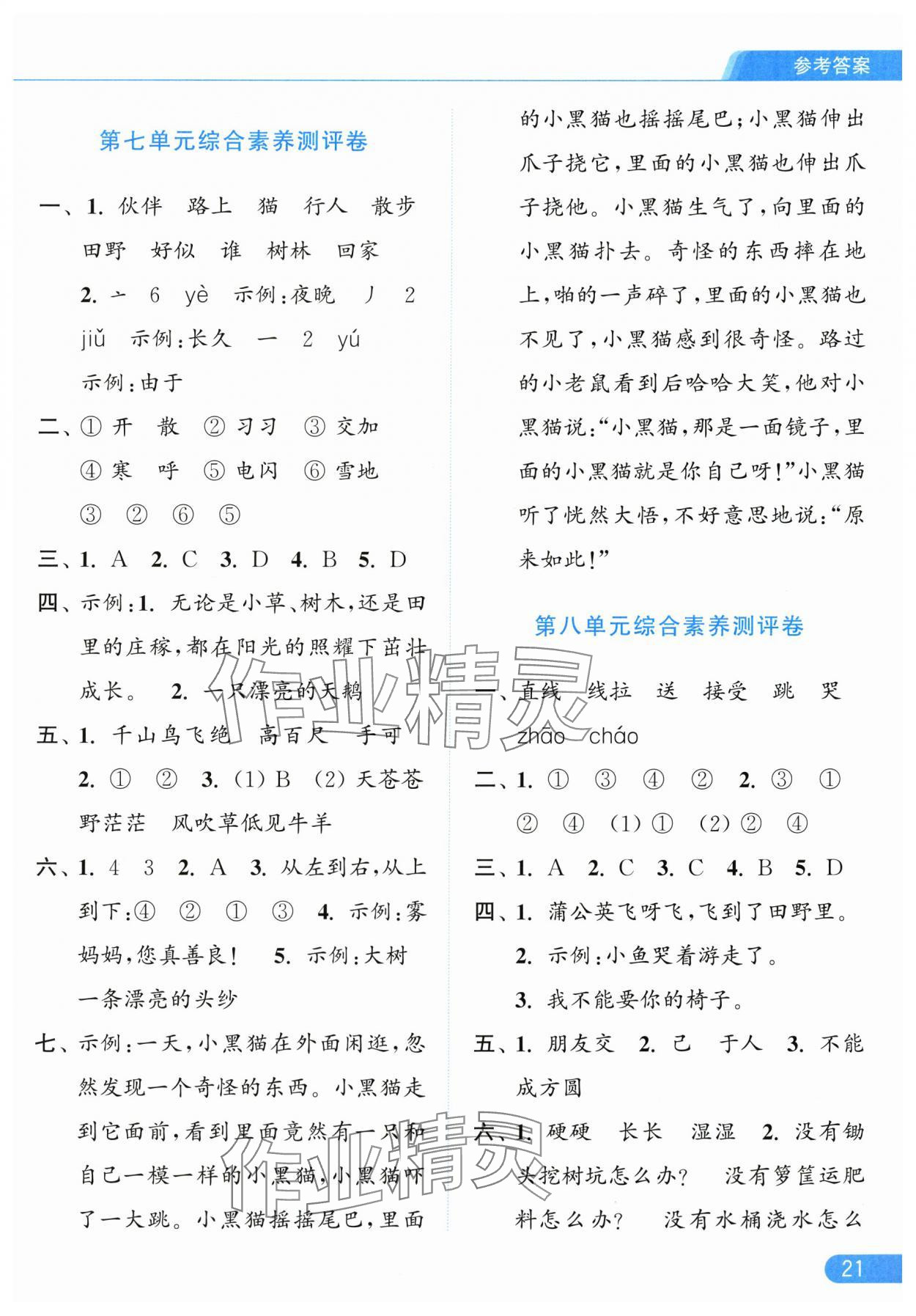 2025年亮点给力提优课时作业本二年级语文上册统编版参考答案第21页