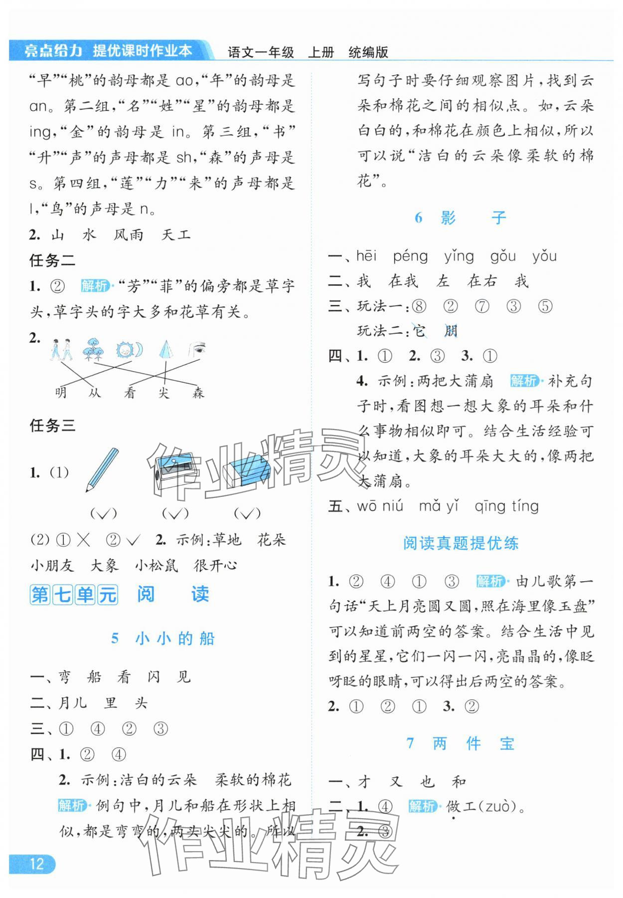2025年亮点给力提优课时作业本一年级语文上册人教版参考答案第12页