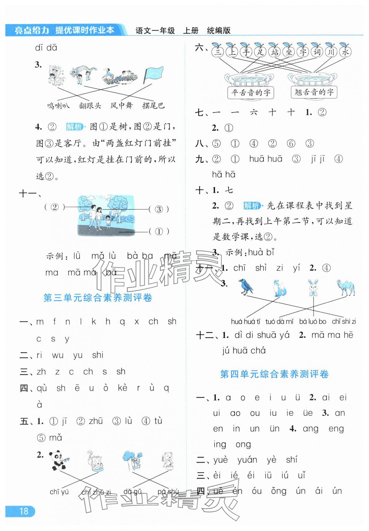 2025年亮点给力提优课时作业本一年级语文上册人教版参考答案第18页
