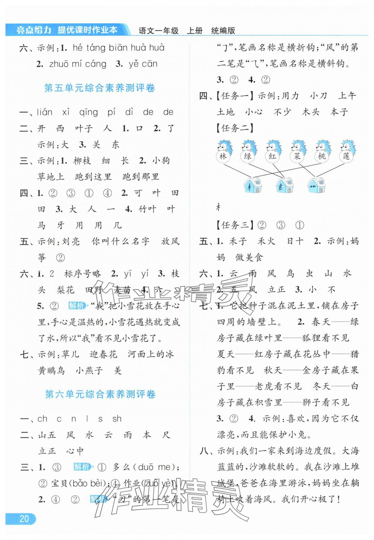 2025年亮点给力提优课时作业本一年级语文上册人教版参考答案第20页