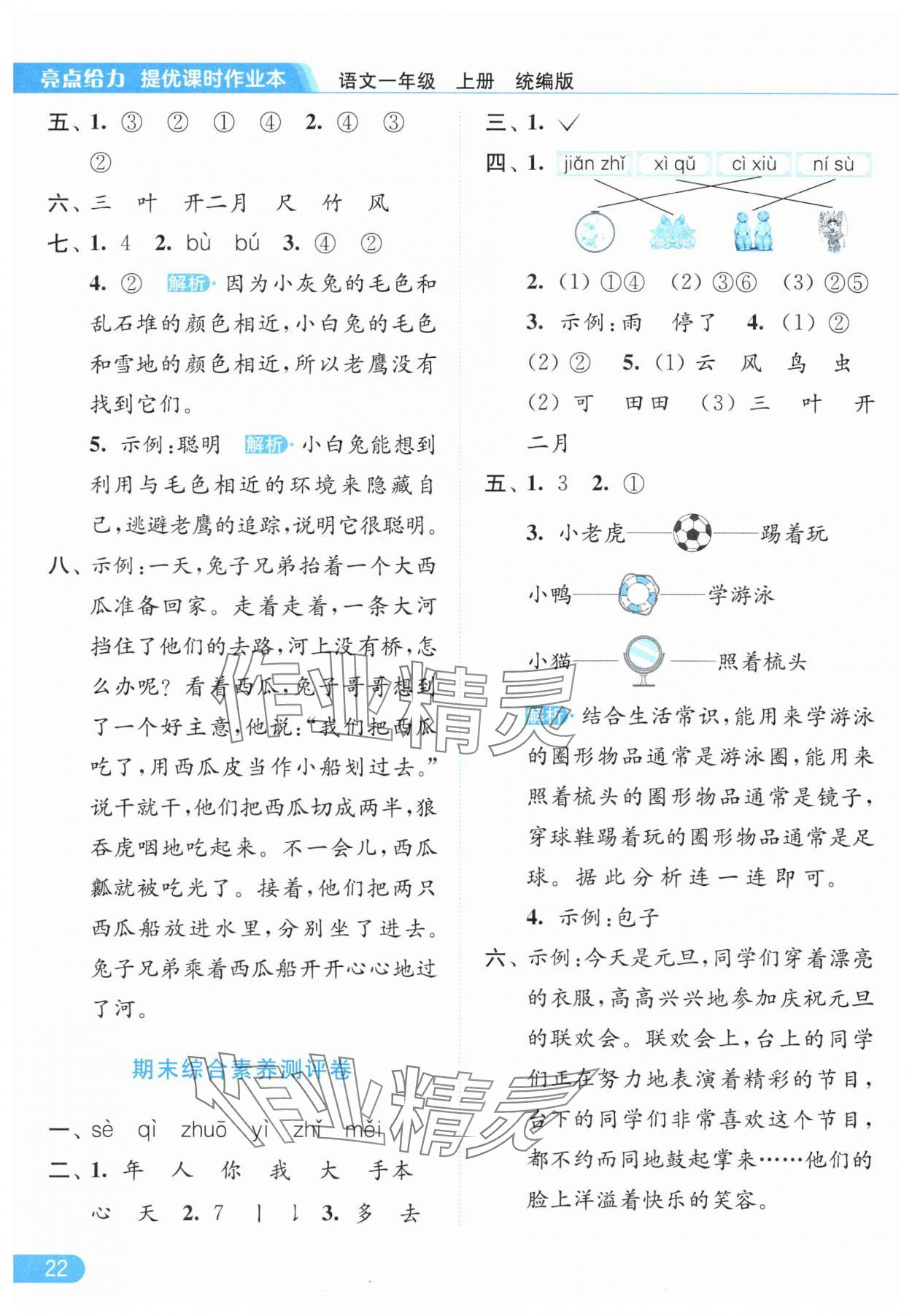 2025年亮点给力提优课时作业本一年级语文上册人教版参考答案第22页