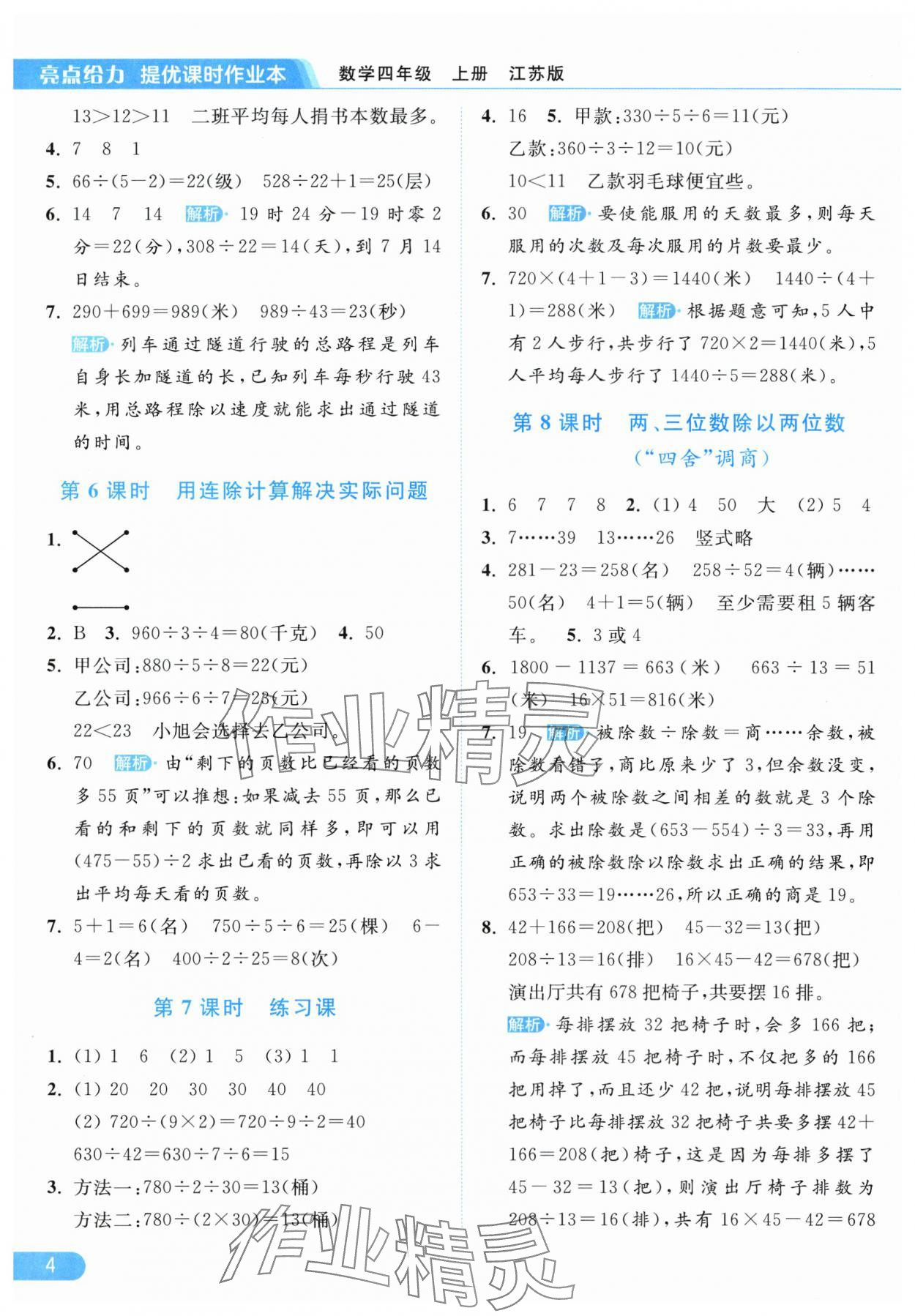 2025年亮点给力提优课时作业本四年级数学上册江苏版参考答案第4页