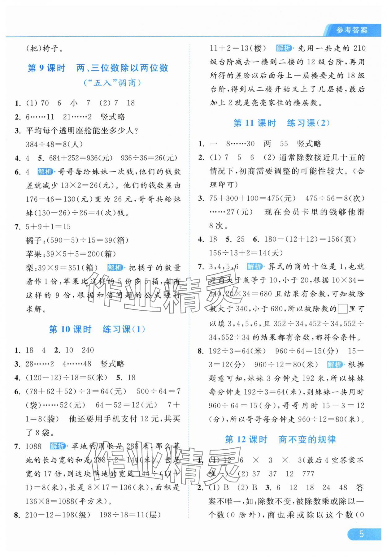 2025年亮点给力提优课时作业本四年级数学上册江苏版参考答案第5页
