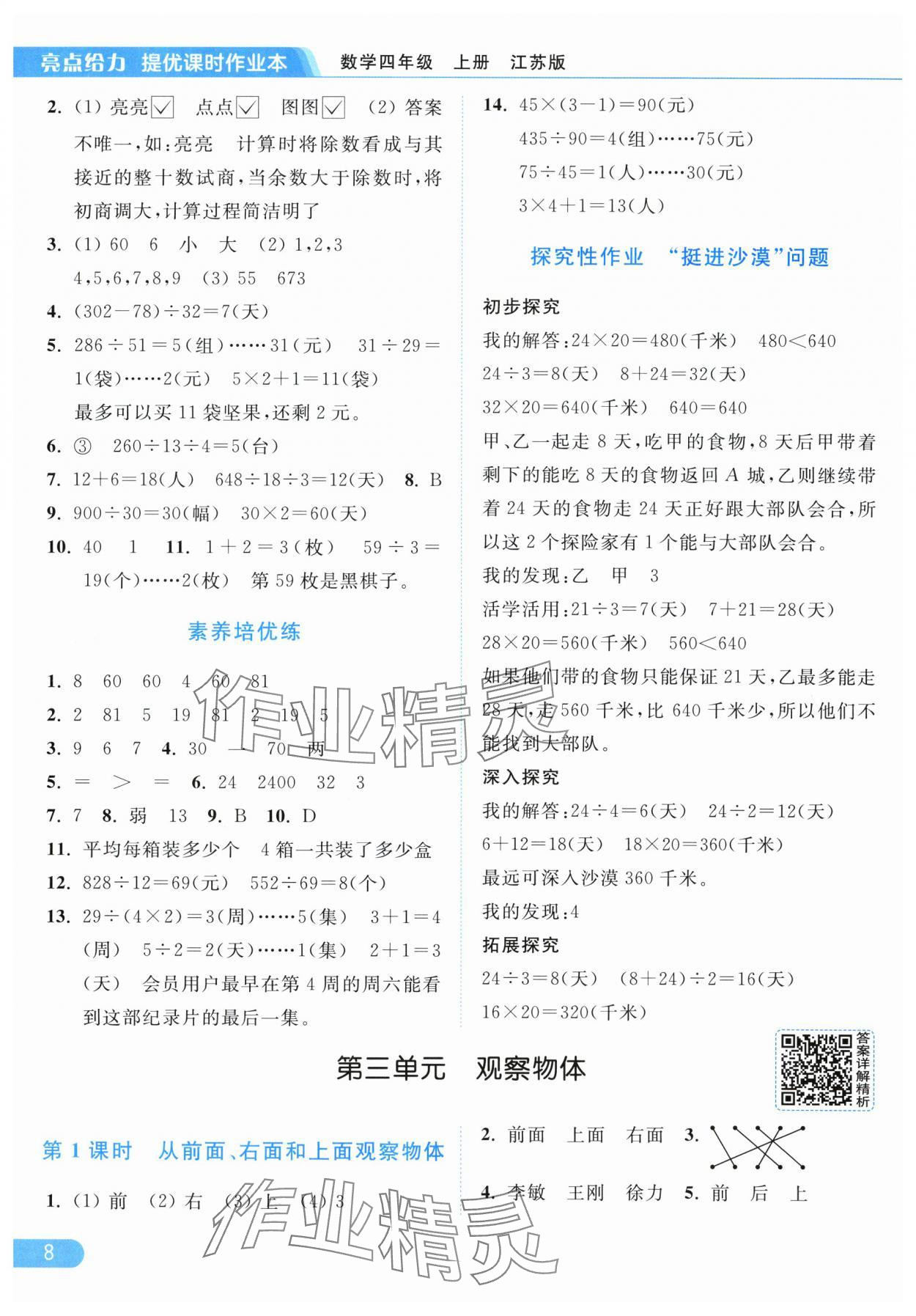 2025年亮点给力提优课时作业本四年级数学上册江苏版参考答案第8页