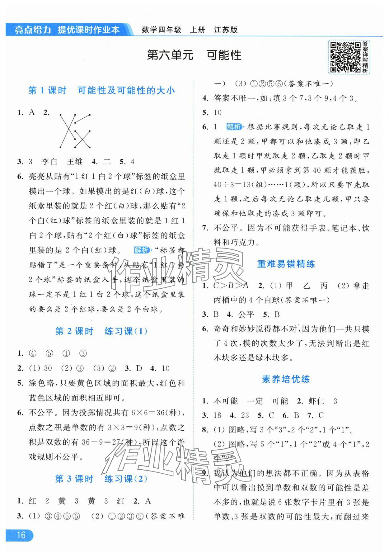 2025年亮点给力提优课时作业本四年级数学上册江苏版参考答案第16页