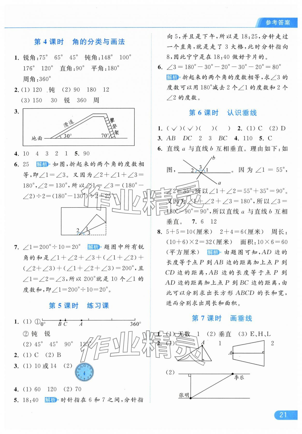 2025年亮点给力提优课时作业本四年级数学上册江苏版参考答案第21页