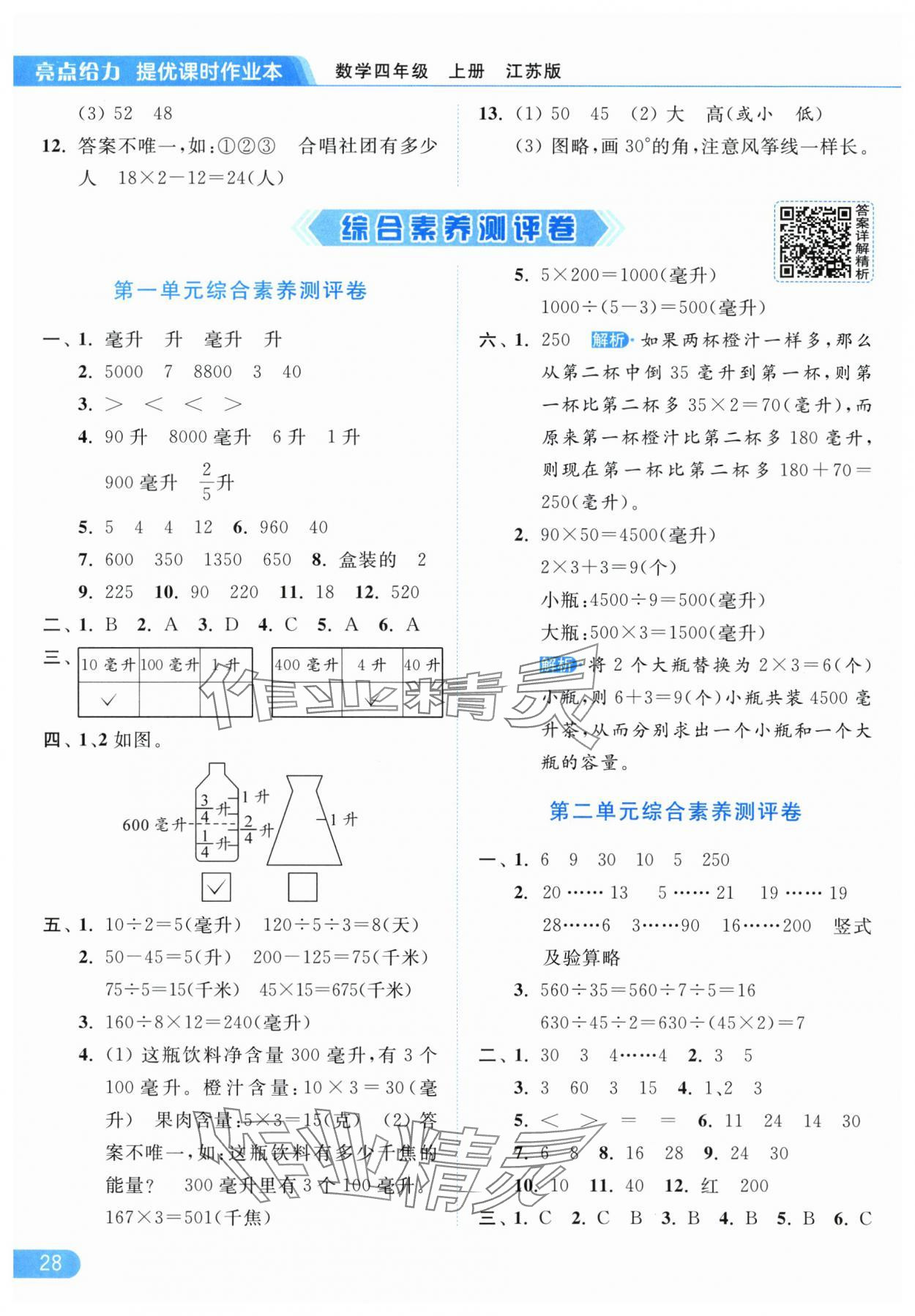 2025年亮点给力提优课时作业本四年级数学上册江苏版参考答案第28页