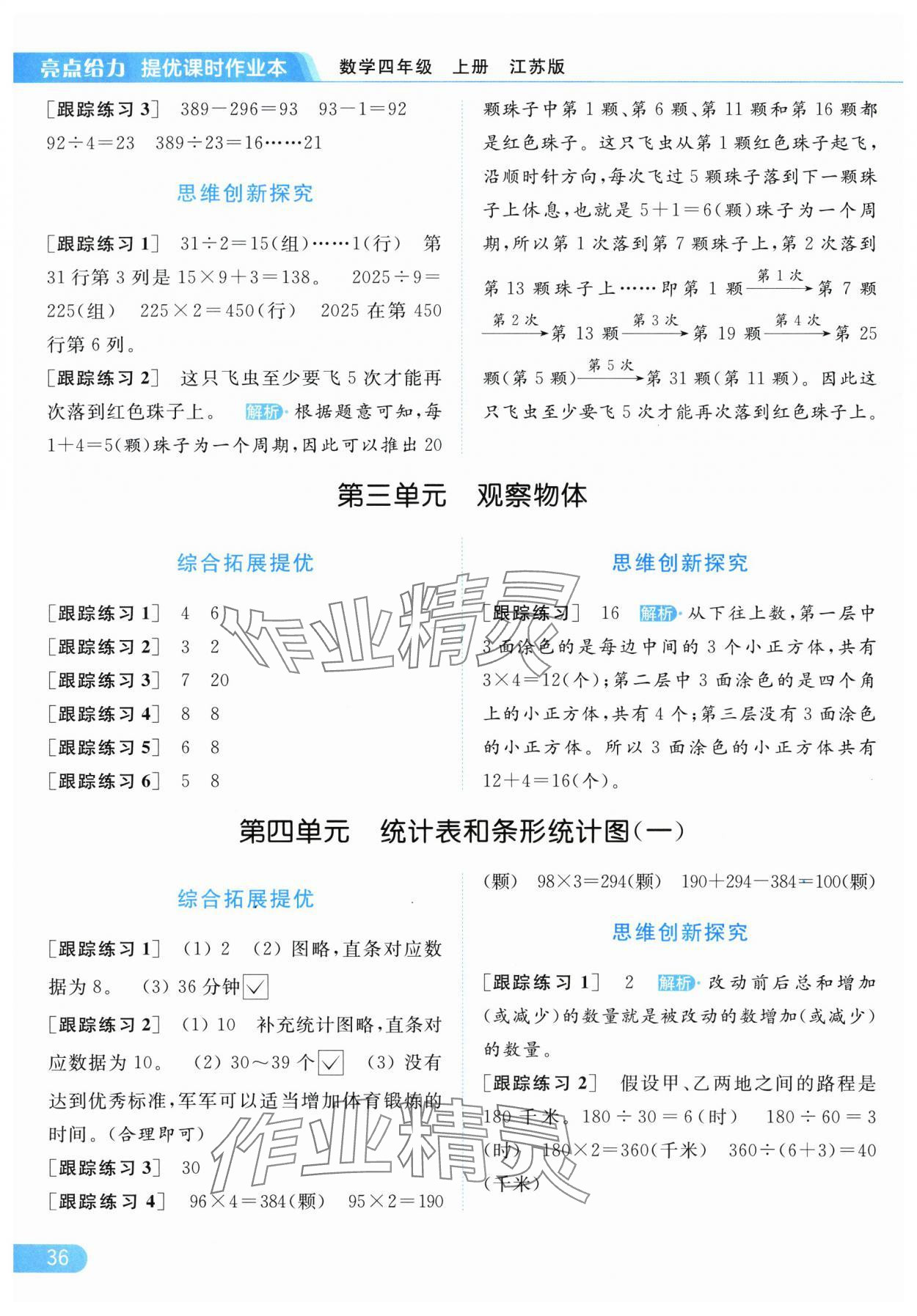 2025年亮点给力提优课时作业本四年级数学上册江苏版参考答案第36页