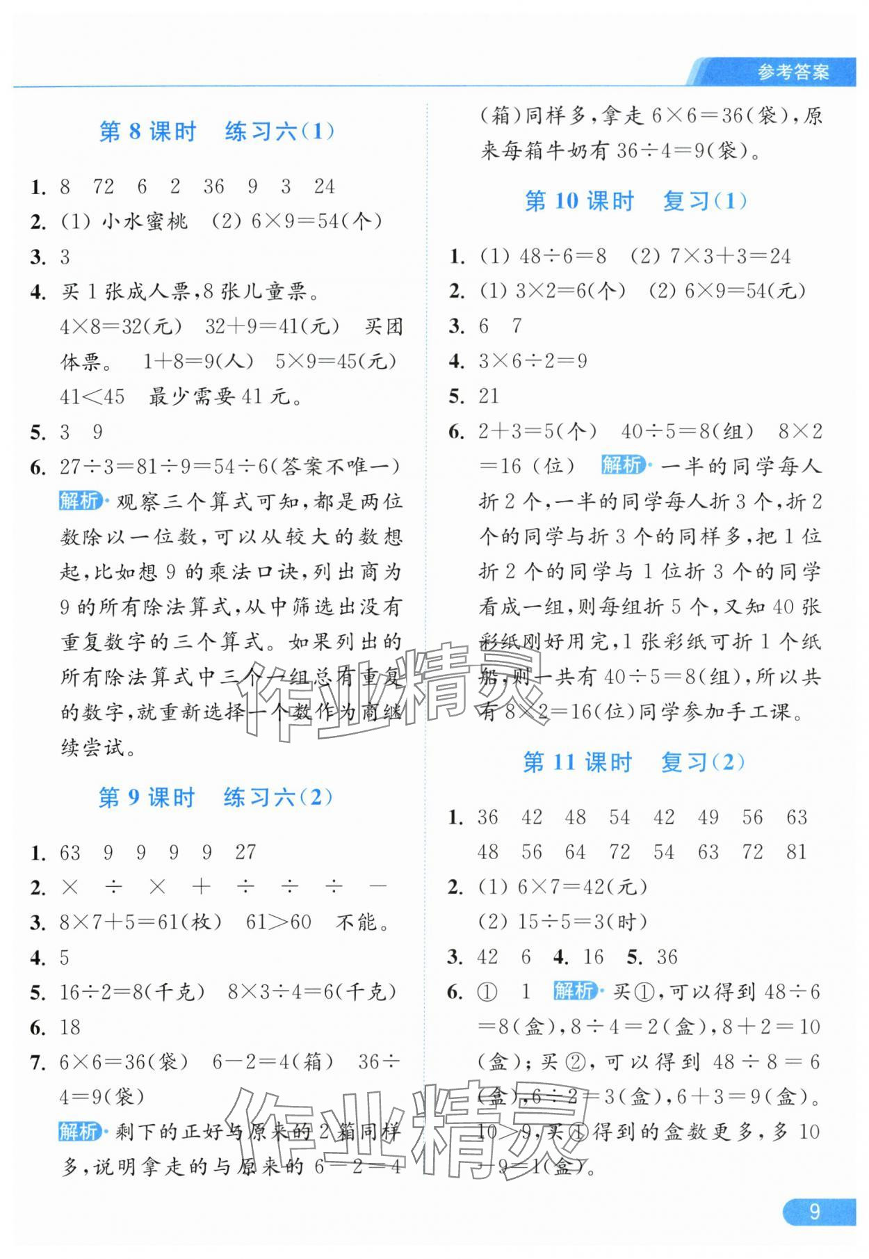 2025年亮点给力提优课时作业本二年级数学上册江苏版参考答案第9页