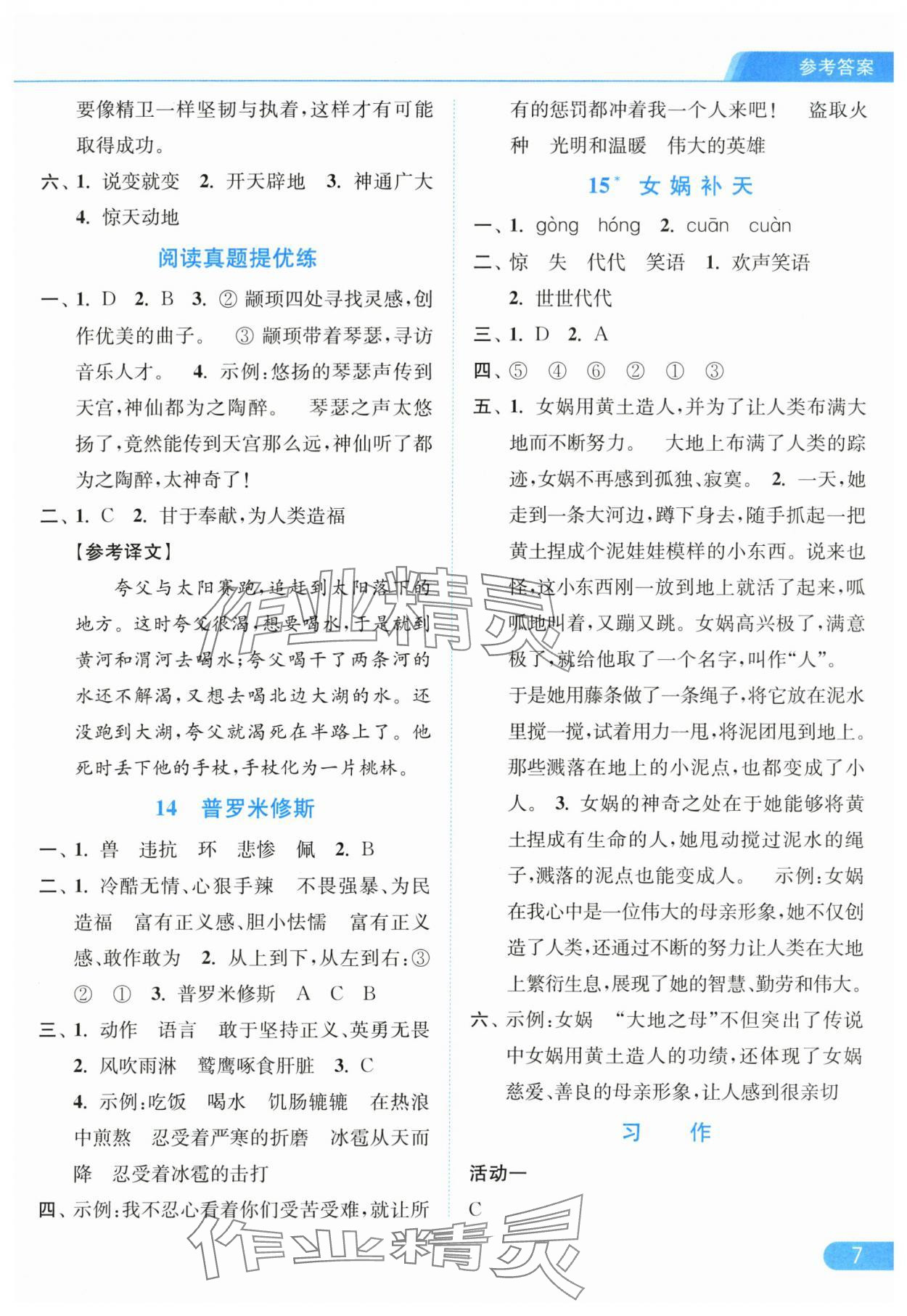 2025年亮点给力提优课时作业本四年级语文上册统编版参考答案第7页