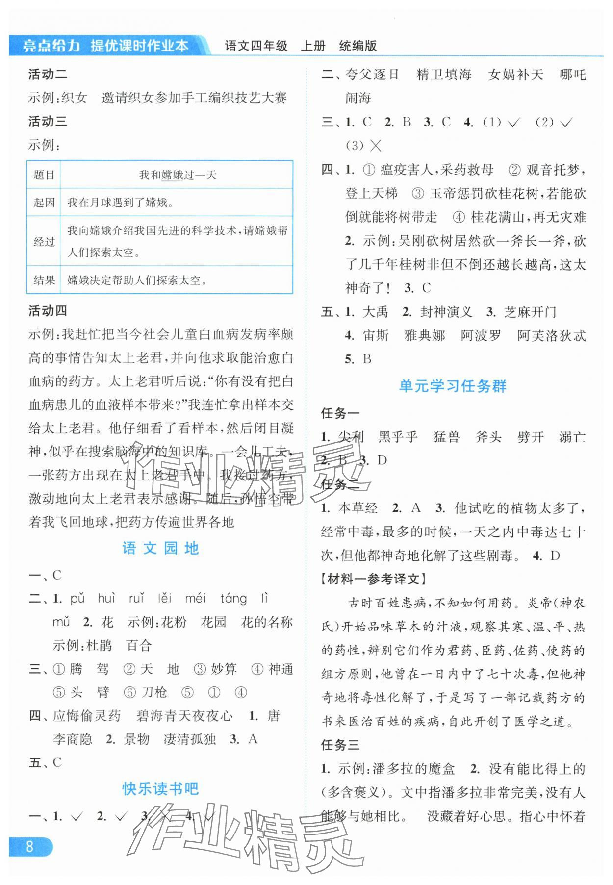 2025年亮点给力提优课时作业本四年级语文上册统编版参考答案第8页