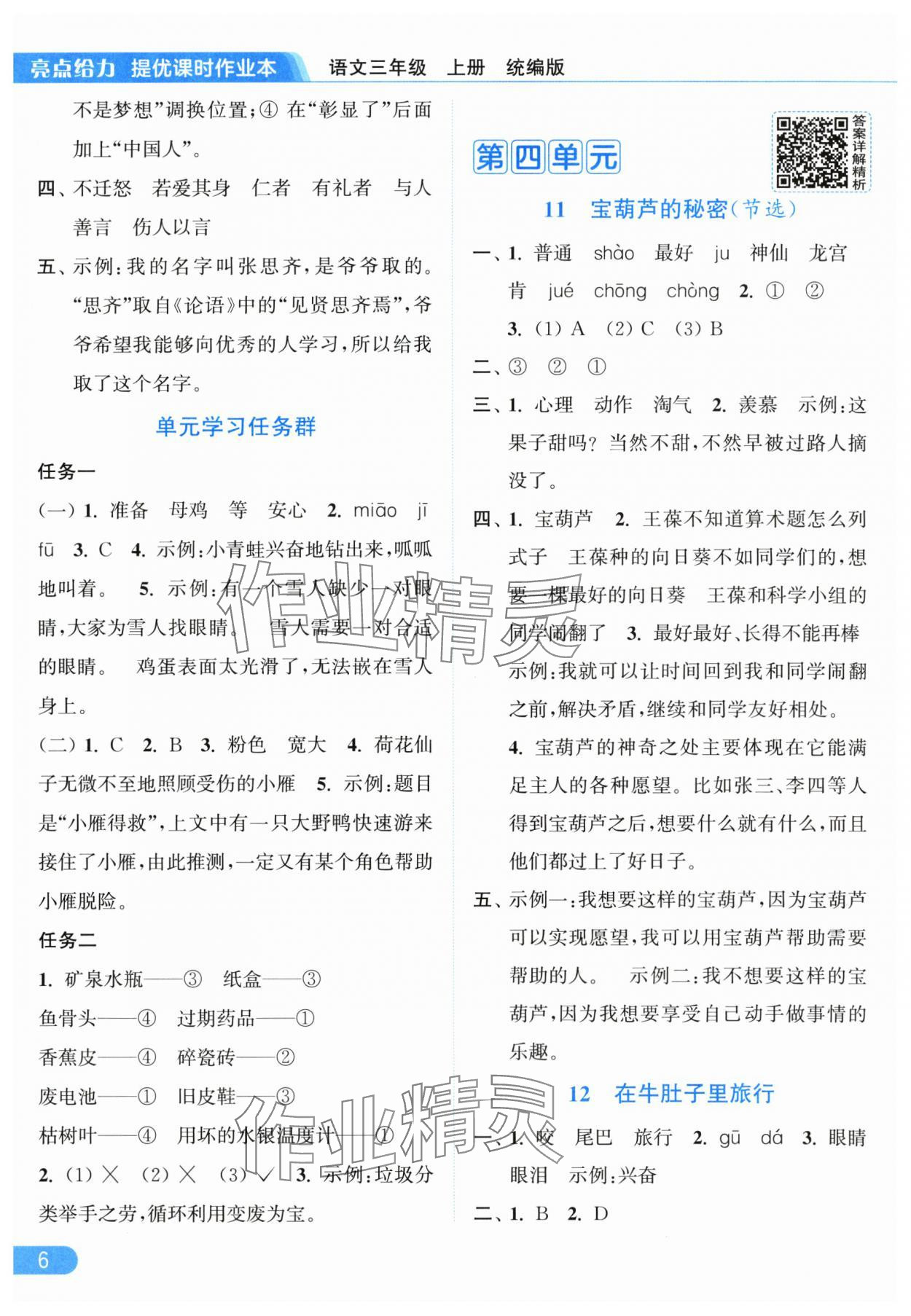 2025年亮点给力提优课时作业本三年级语文上册统编版参考答案第6页