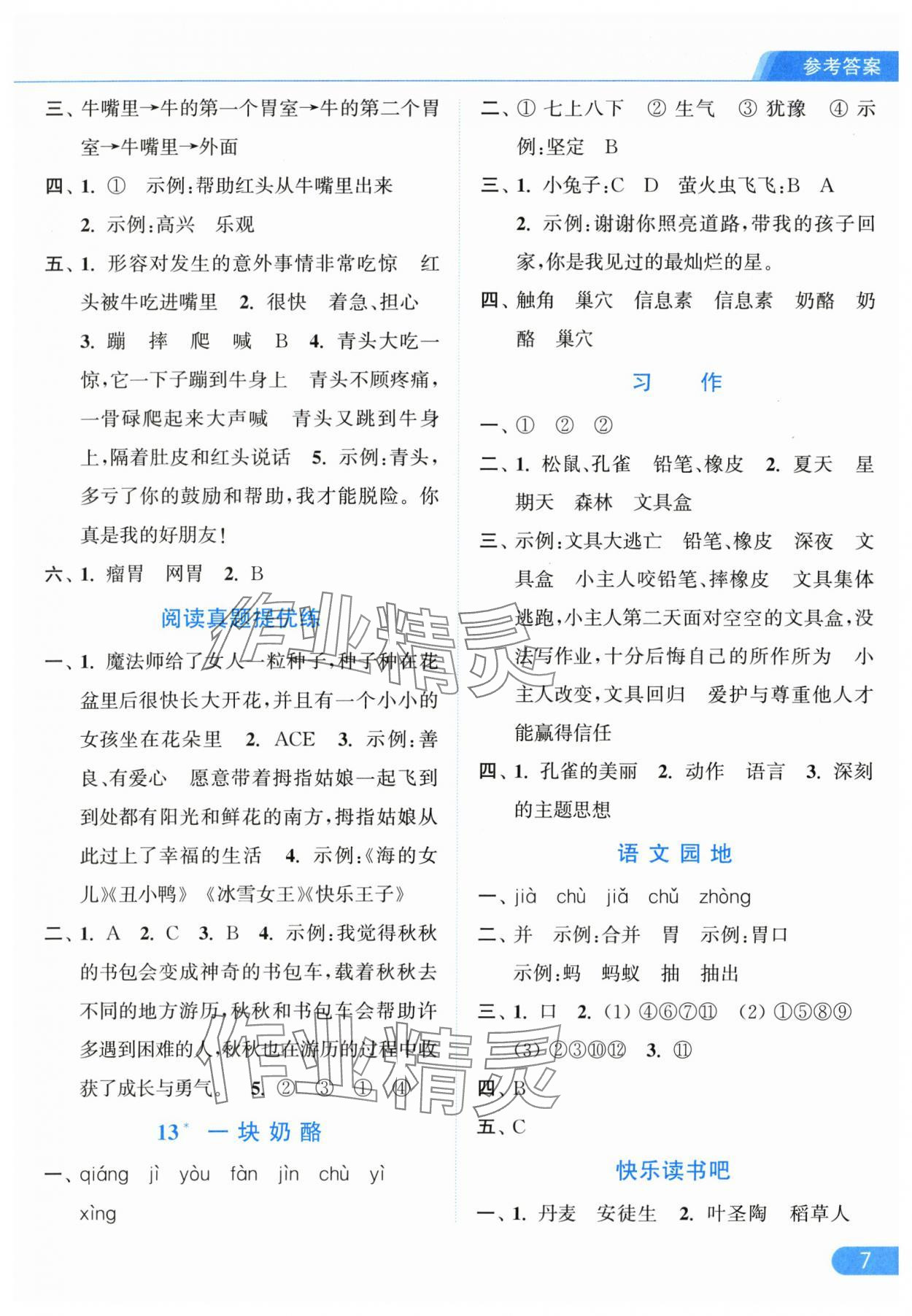2025年亮点给力提优课时作业本三年级语文上册统编版参考答案第7页