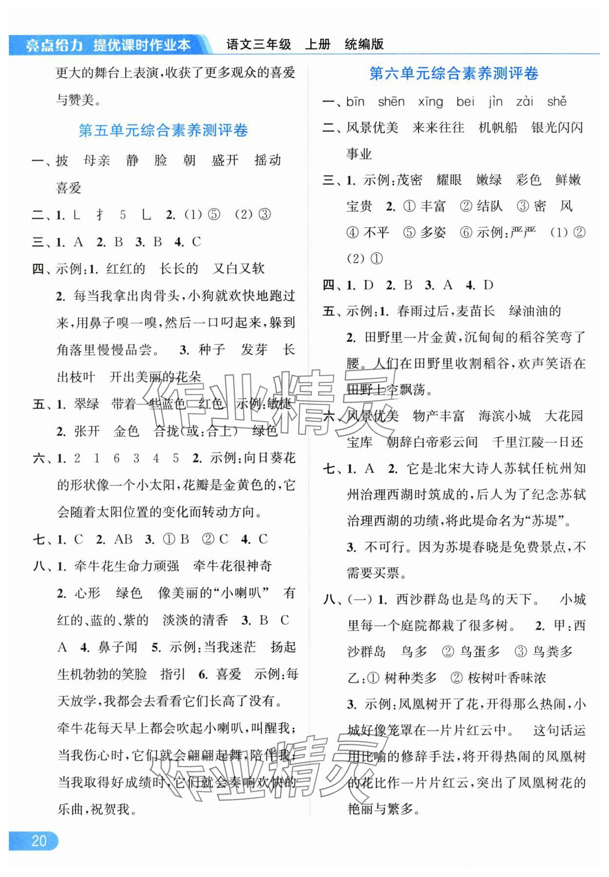 2025年亮点给力提优课时作业本三年级语文上册统编版参考答案第20页