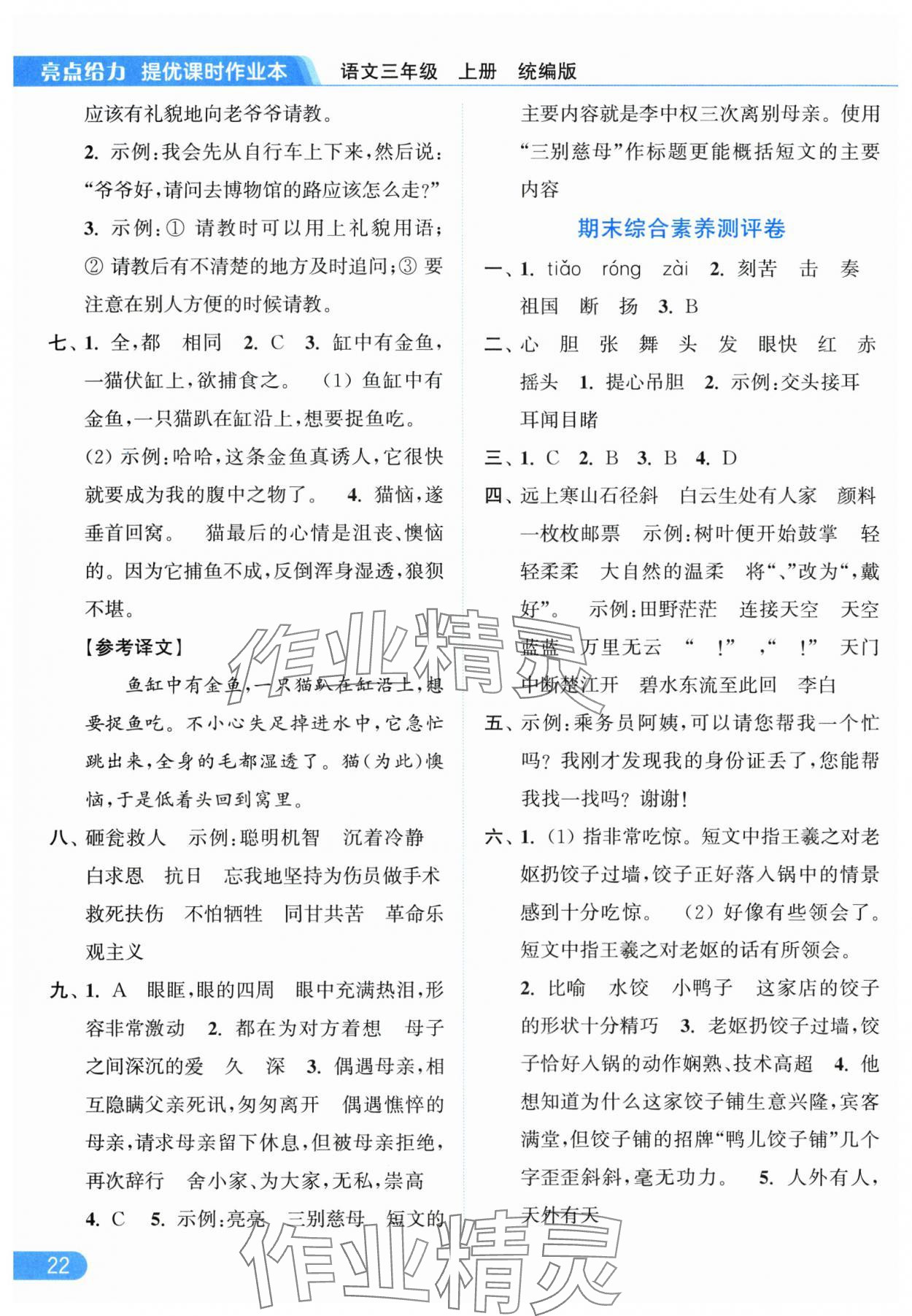 2025年亮点给力提优课时作业本三年级语文上册统编版参考答案第22页