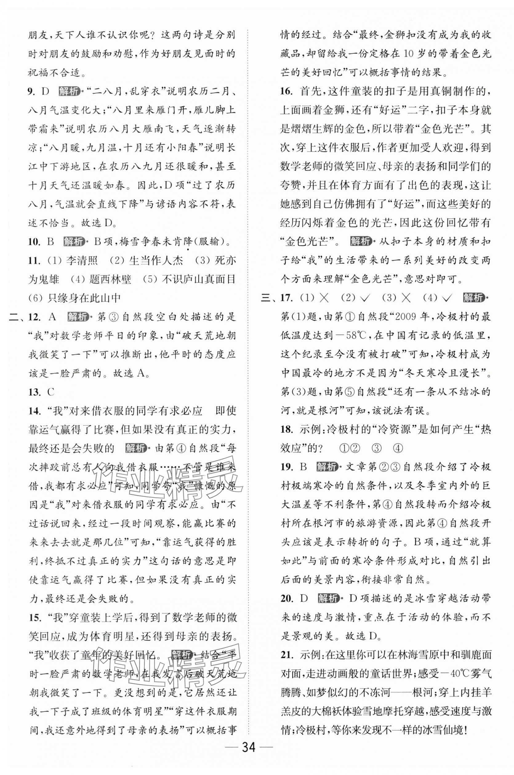 亮点给力提优课时作业本答案