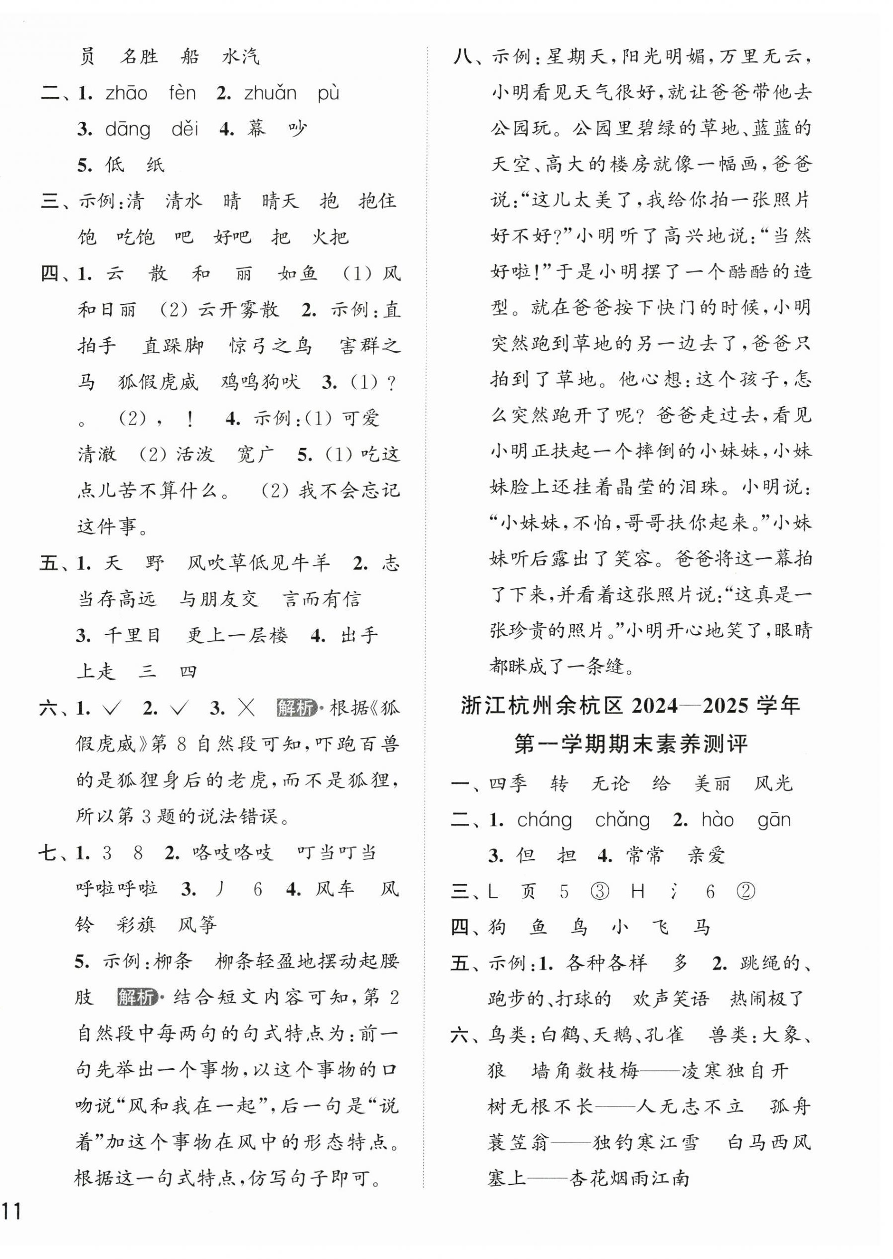 2025年亮点给力提优课时作业本二年级语文上册统编版参考答案第24页