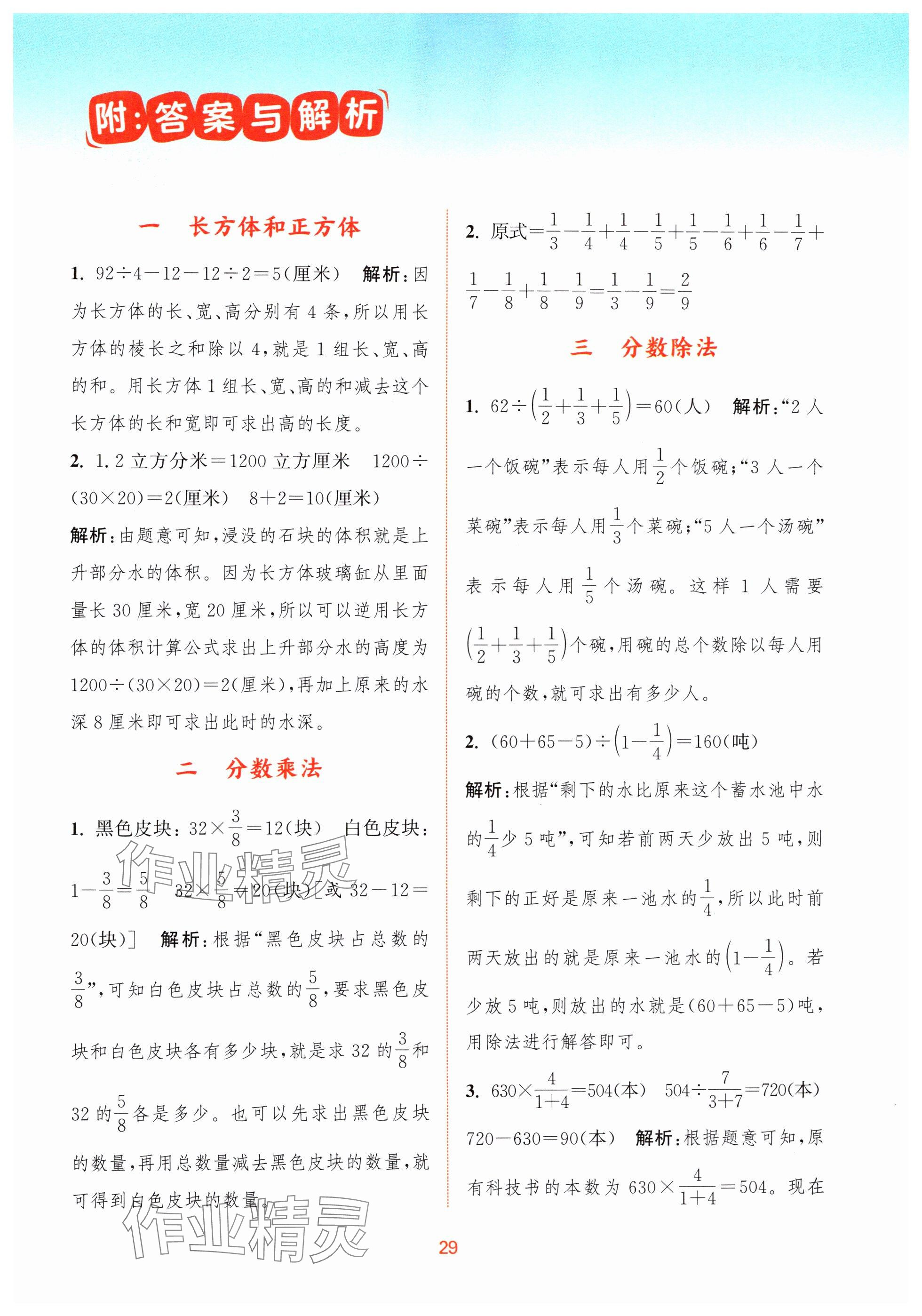 2025年课时作业本闯关练六年级数学上册苏教版参考答案第52页