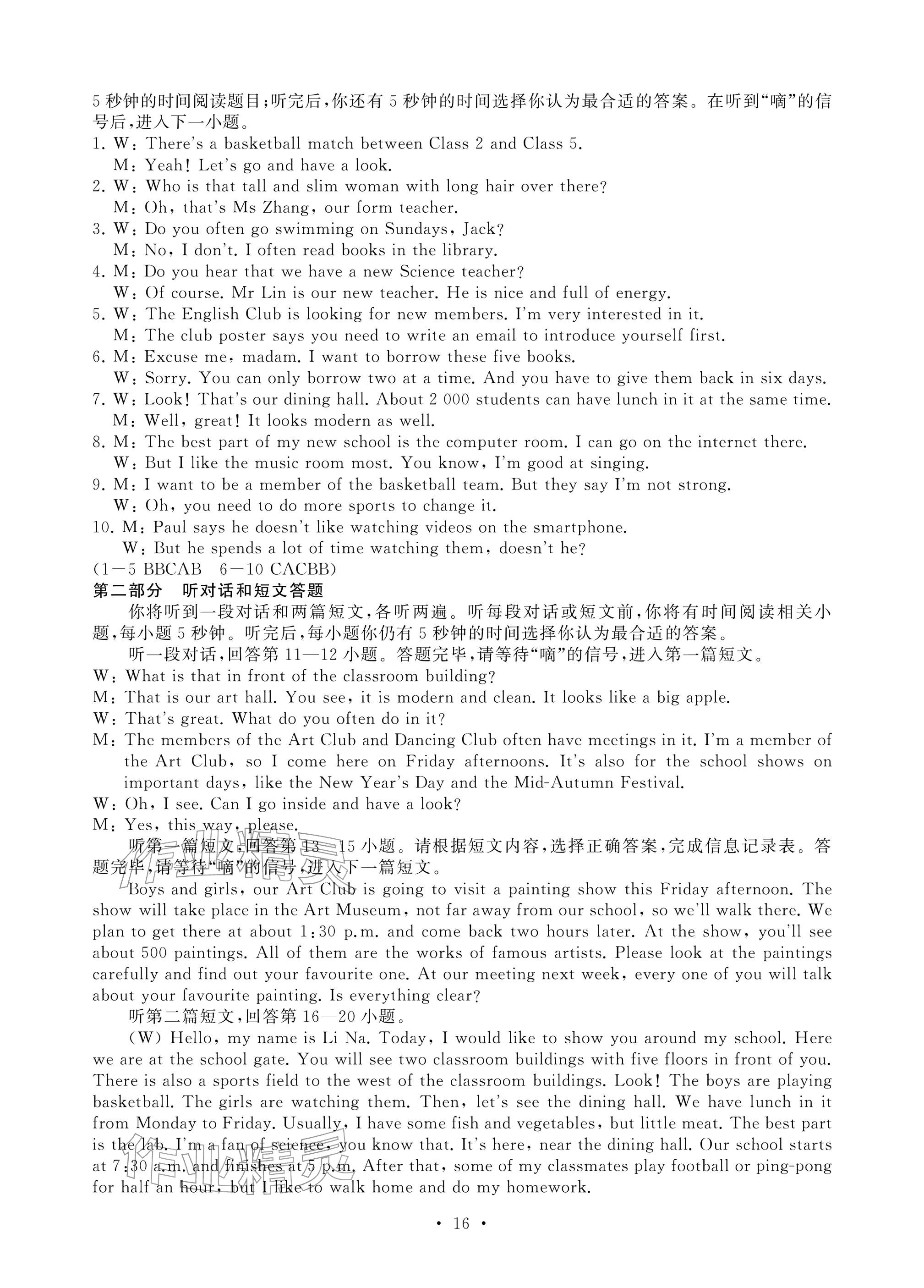2025年综合素质随堂反馈七年级英语上册译林版苏州专版参考答案第8页
