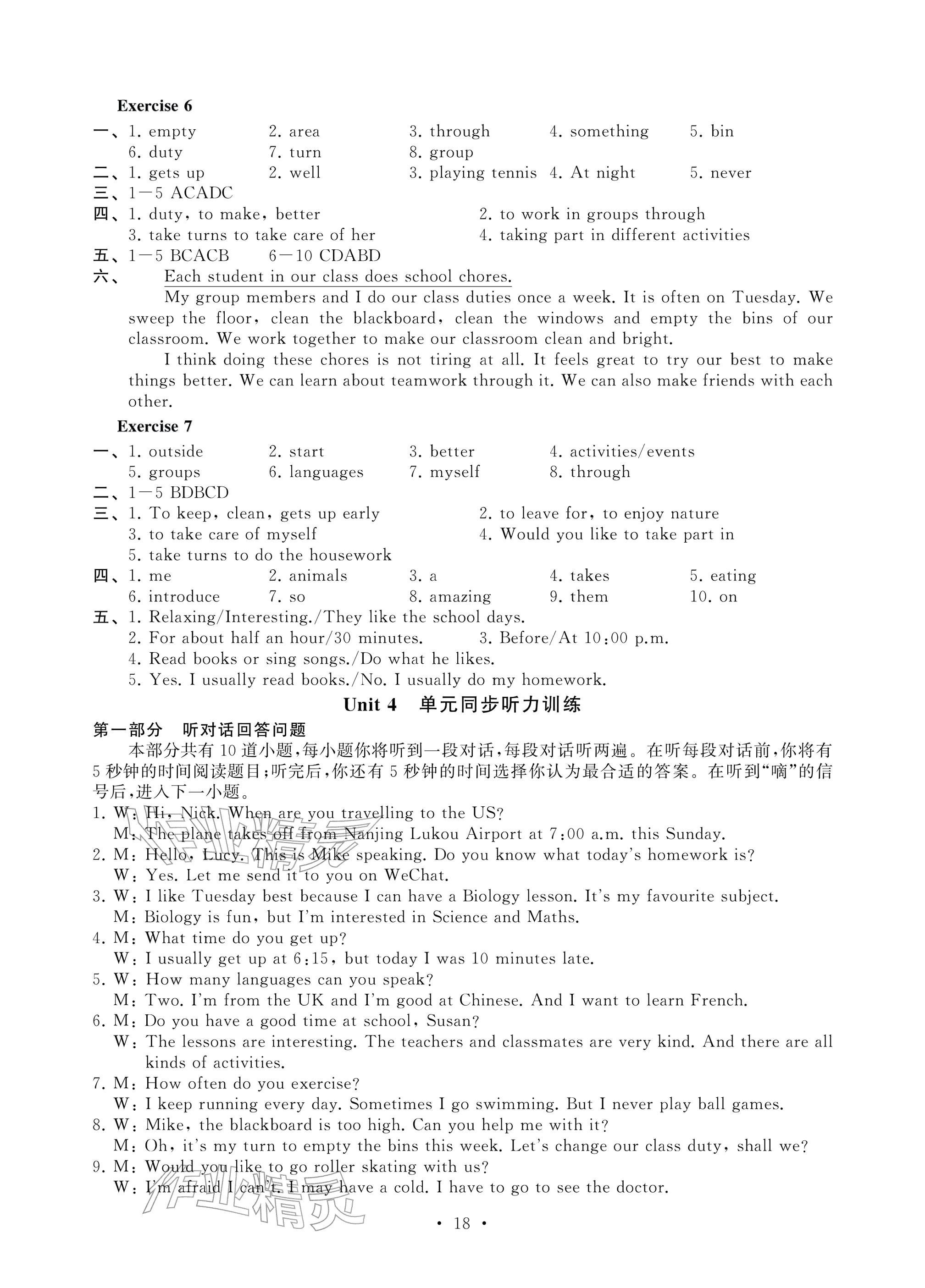 2025年综合素质随堂反馈七年级英语上册译林版苏州专版参考答案第10页