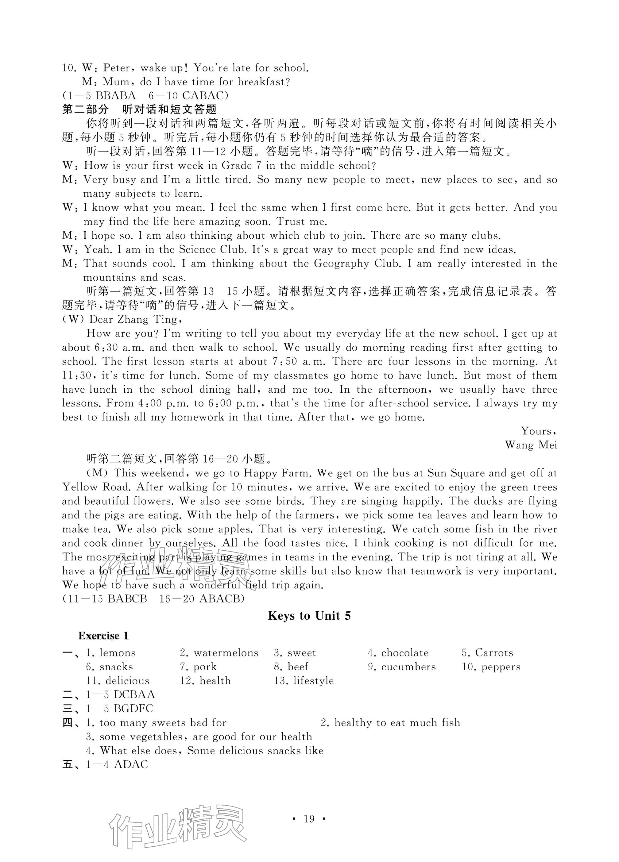 2025年综合素质随堂反馈七年级英语上册译林版苏州专版参考答案第11页