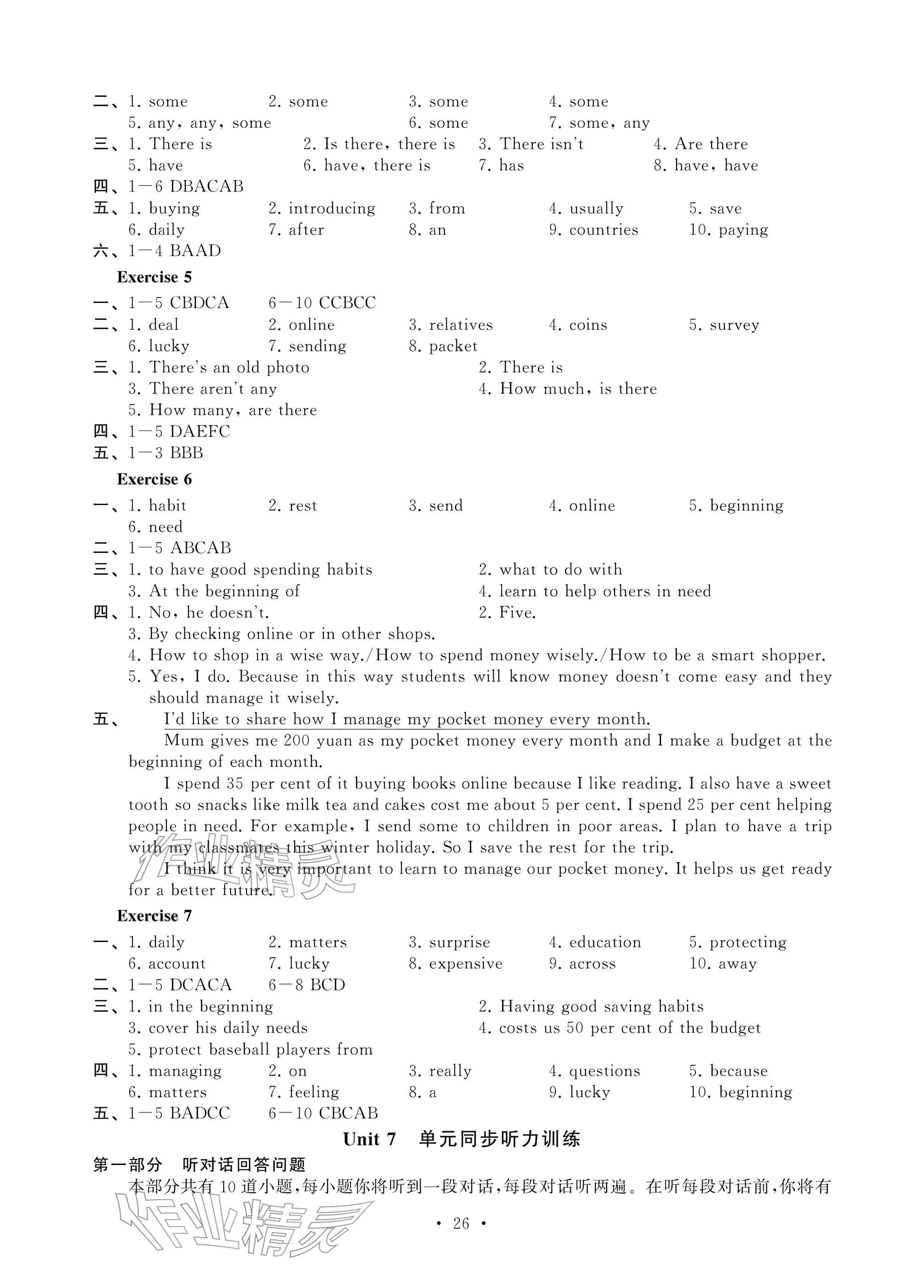 2025年综合素质随堂反馈七年级英语上册译林版苏州专版参考答案第18页