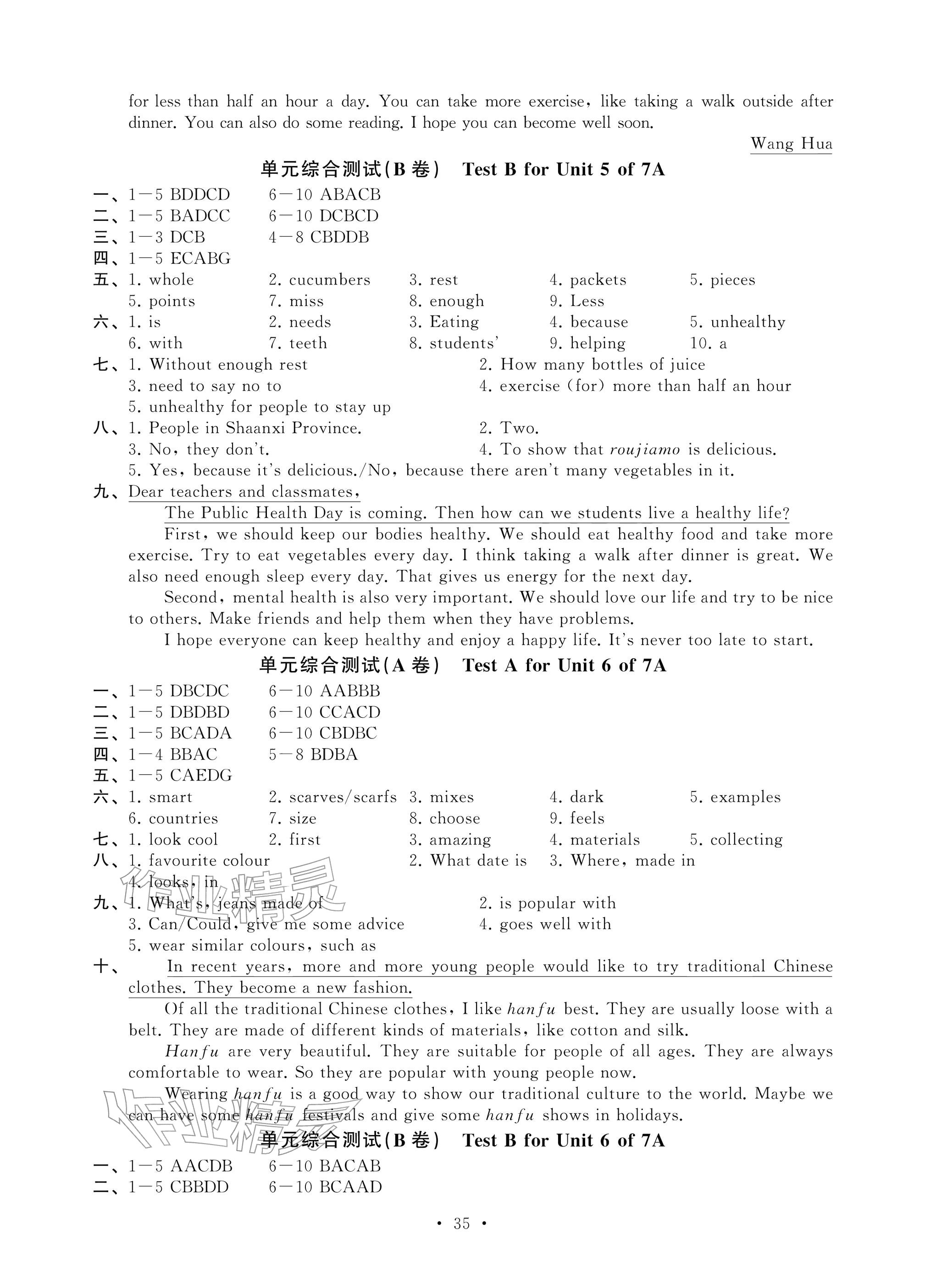 2025年综合素质随堂反馈七年级英语上册译林版苏州专版参考答案第27页